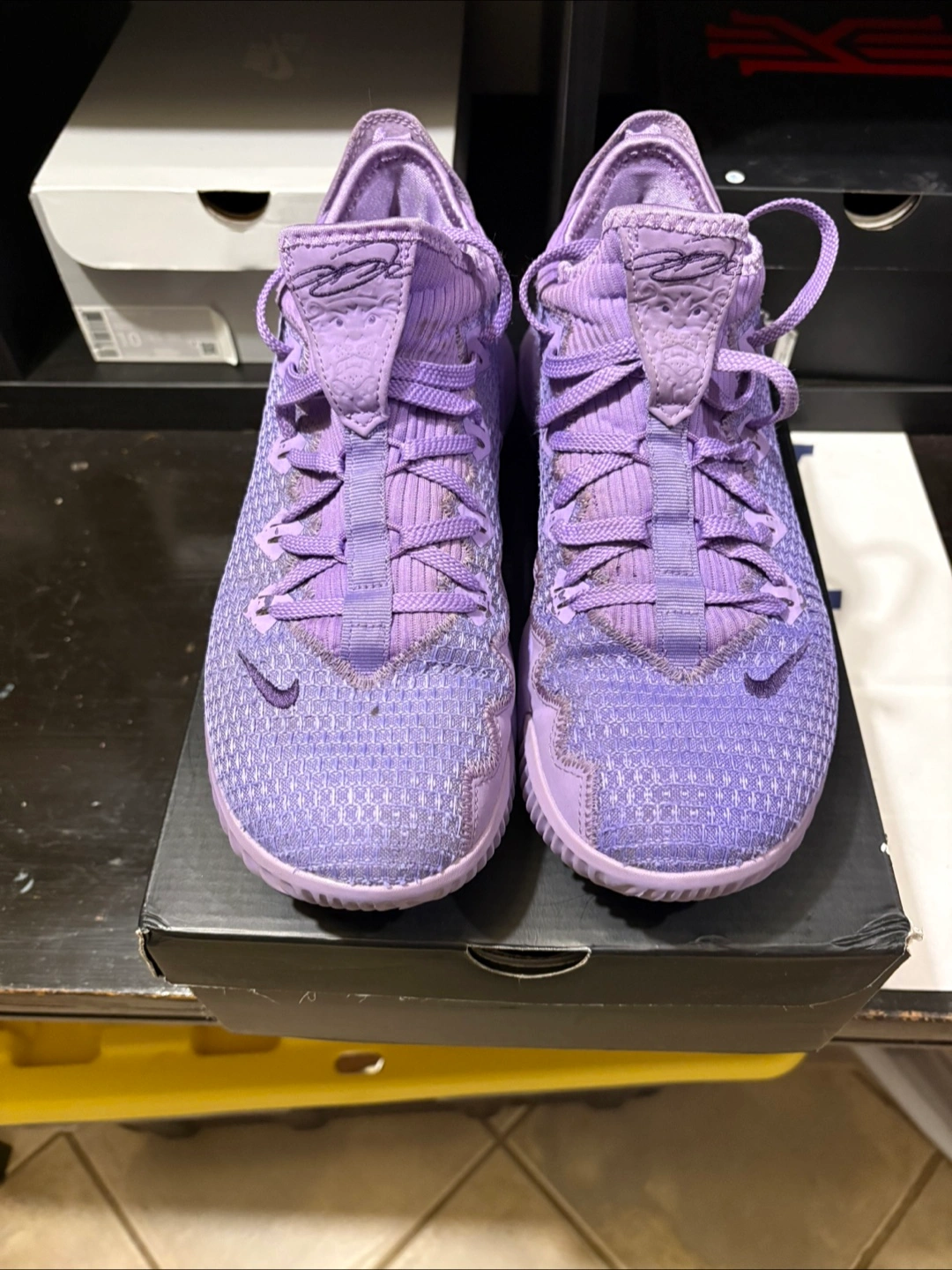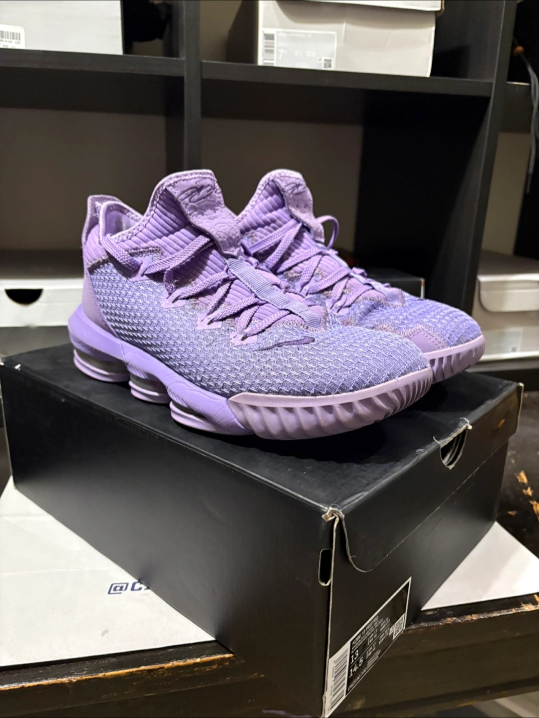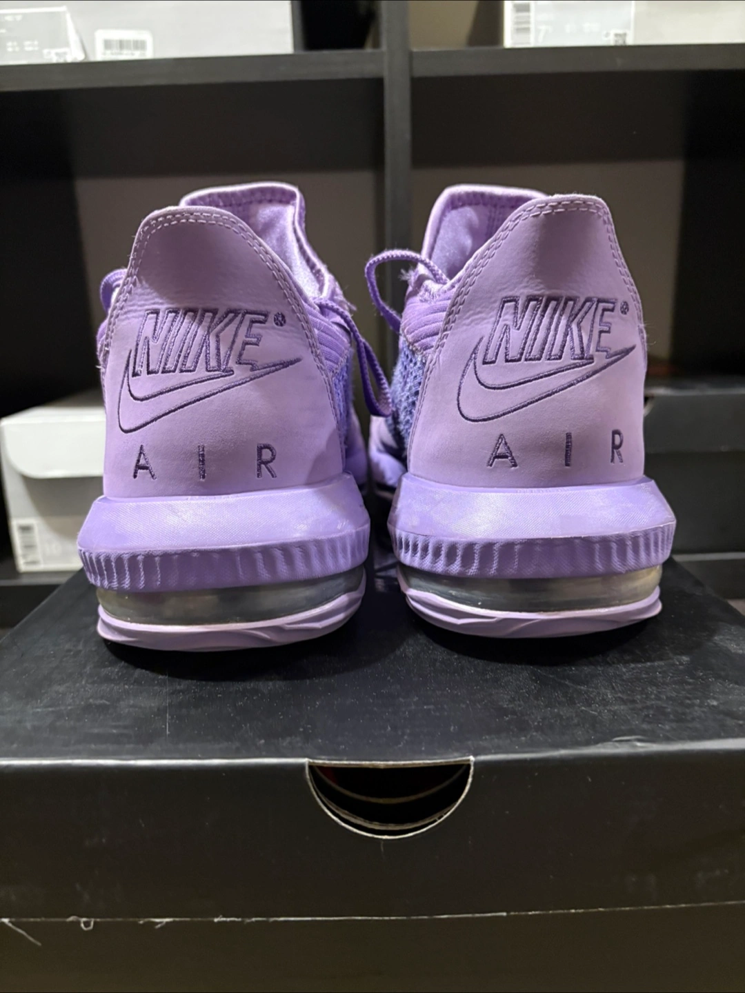 Selling a pair of Nike LeBron XVI Low basketball sneakers in atomic purple size US 9.5. Replacement box