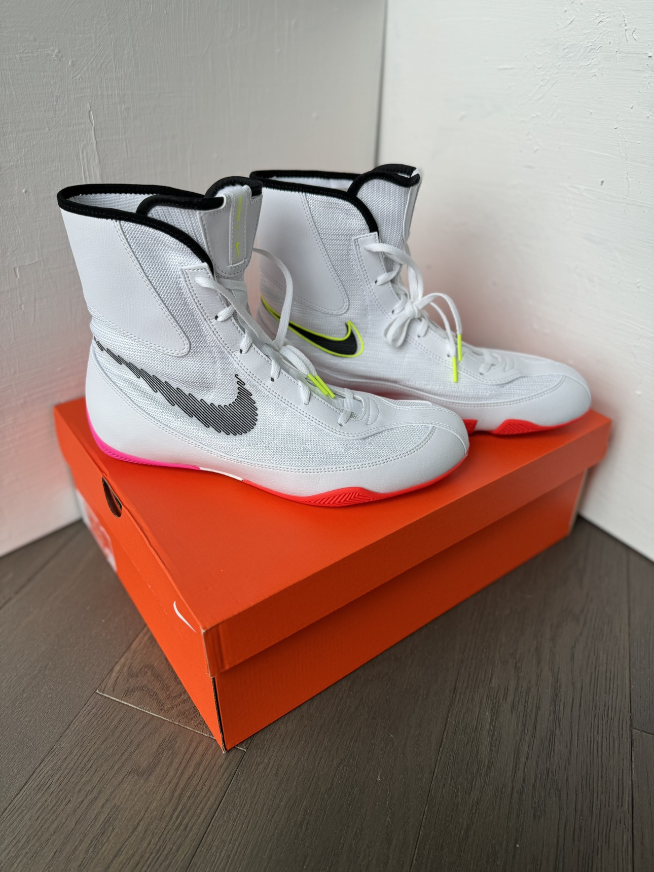 10Selling NIKE MACHOMAI 2 SE - WHITE/BLACK/BRIGHT CRIMSON boxing shoes/boots This pair is sold out everywhere. Perfect for training and sparring. Size US 11, true to size. Extremely light weight and beautiful design. One of a kind. Pick up and cash only. Will not respond to low ballers. Happy boxing!
