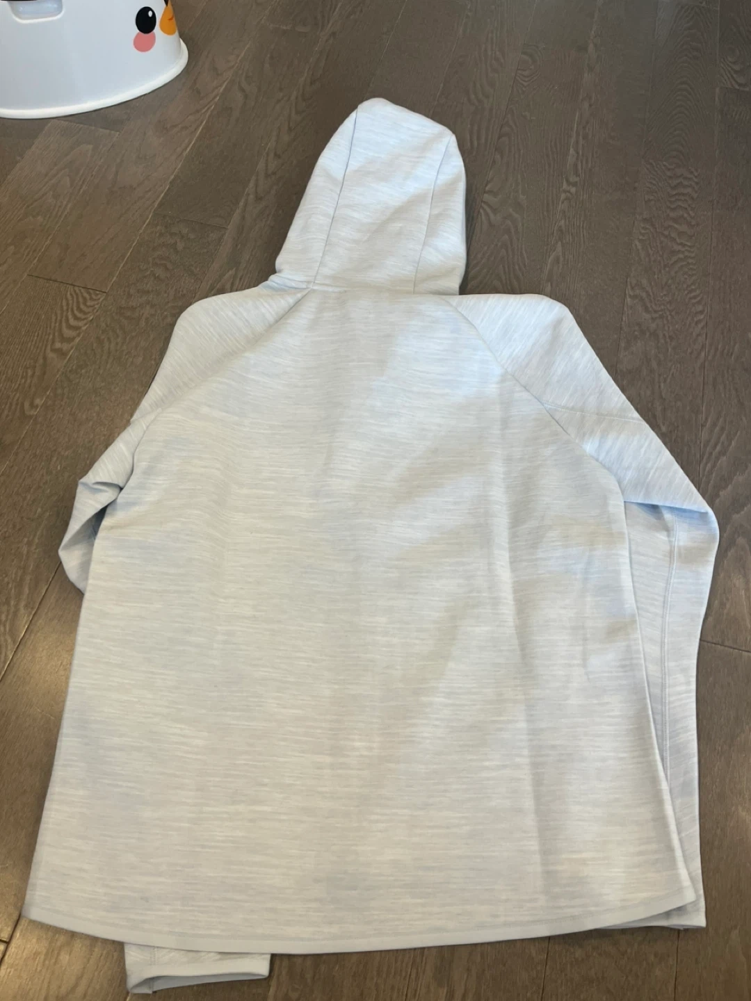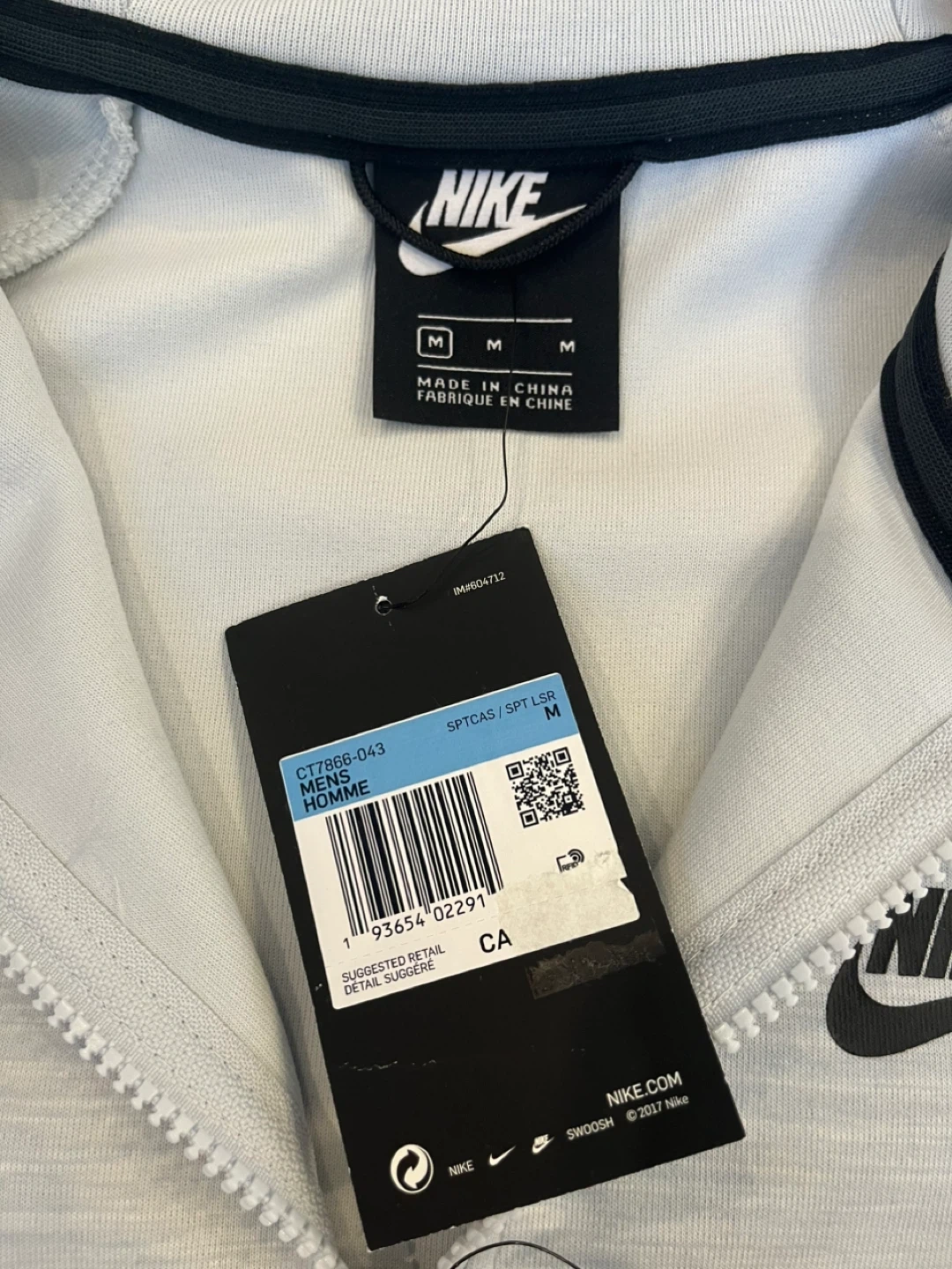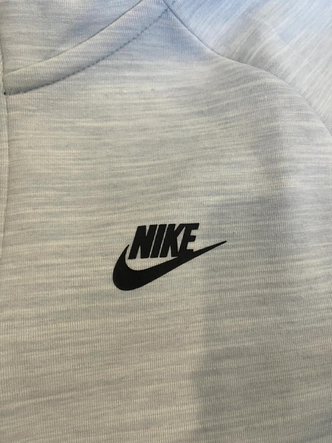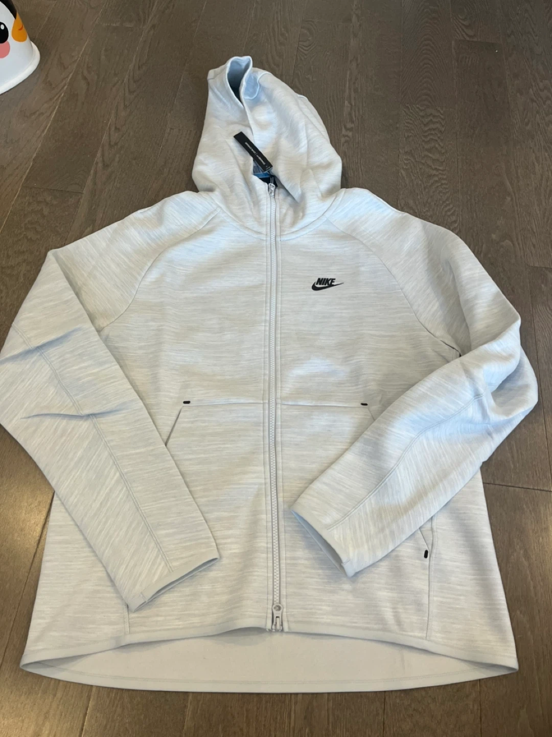 Selling a Nike men's hoodie, size medium. It's a light grey colour with the Nike logo on the front. The tag indicates it's the SPTCAS/SPT LSR model. Great for casual wear or workouts!