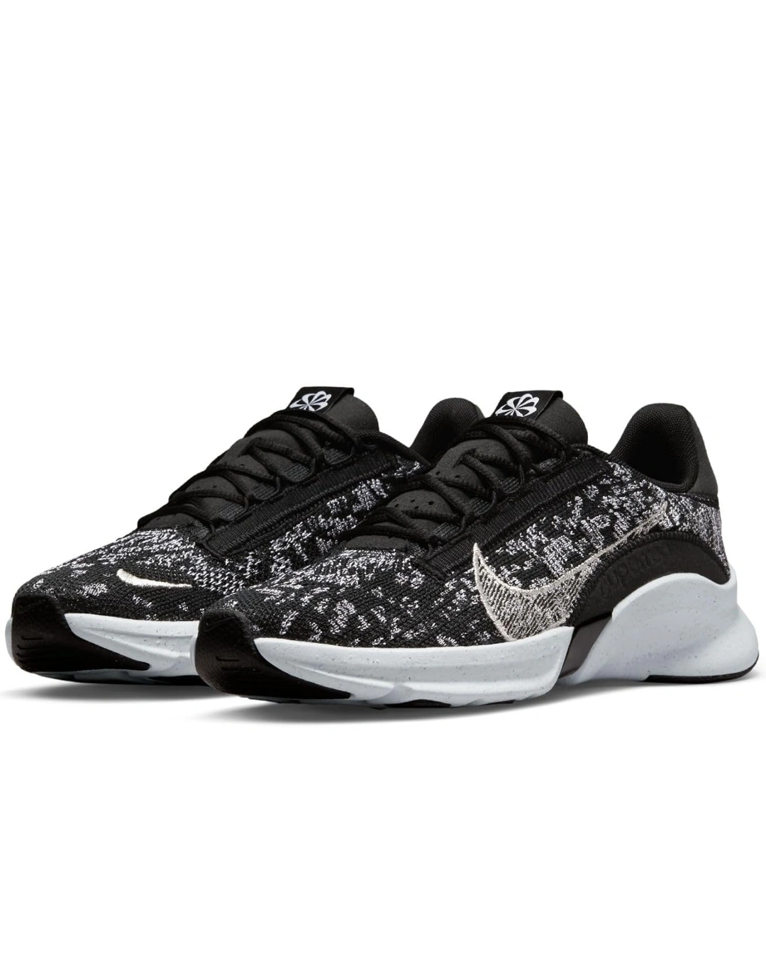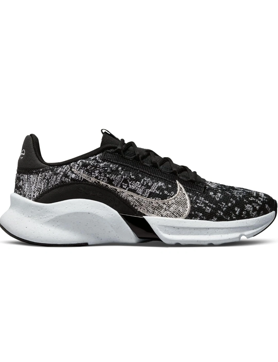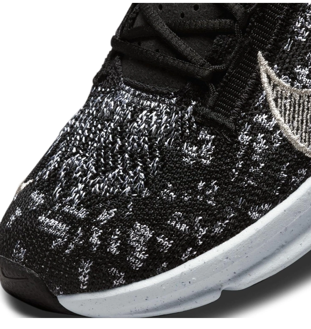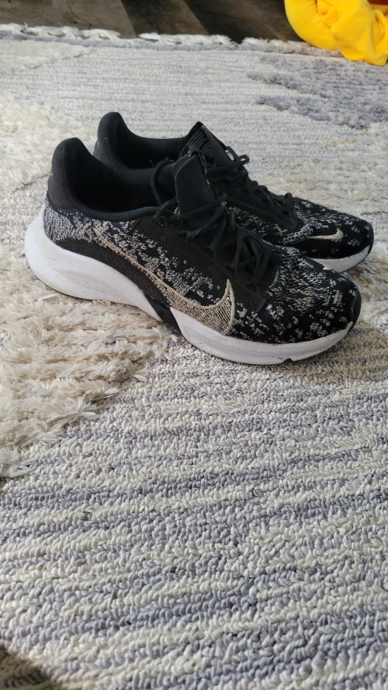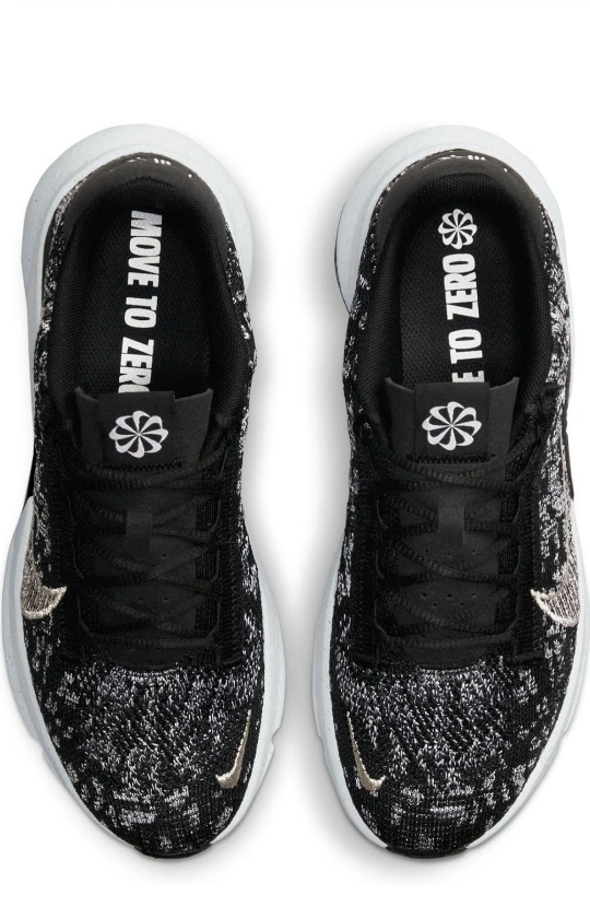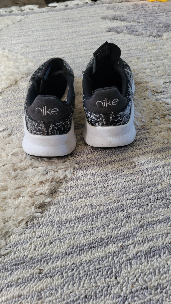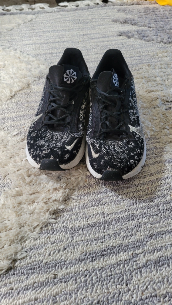 15Women's Nike Move To Zero running shoes, black and white with silver accents. The shoes are knit and have a white sole. ladies size 9