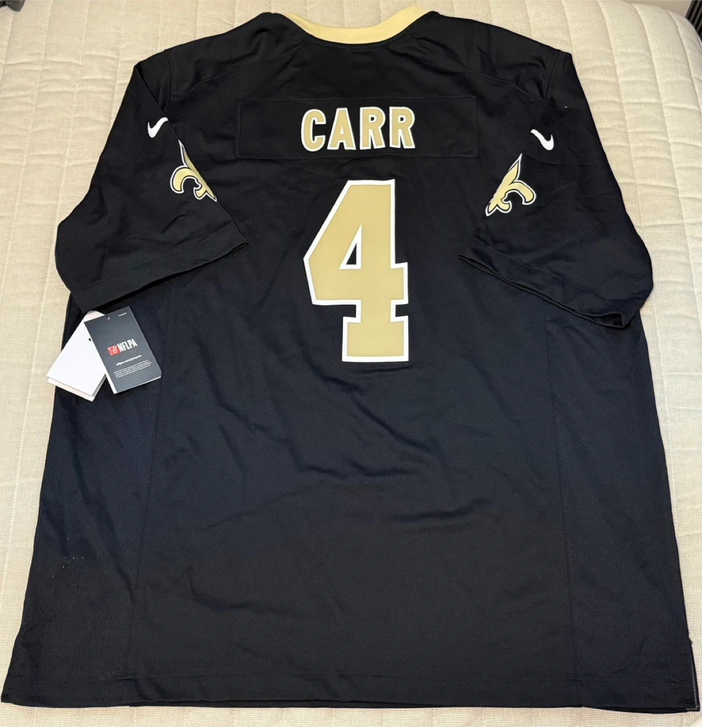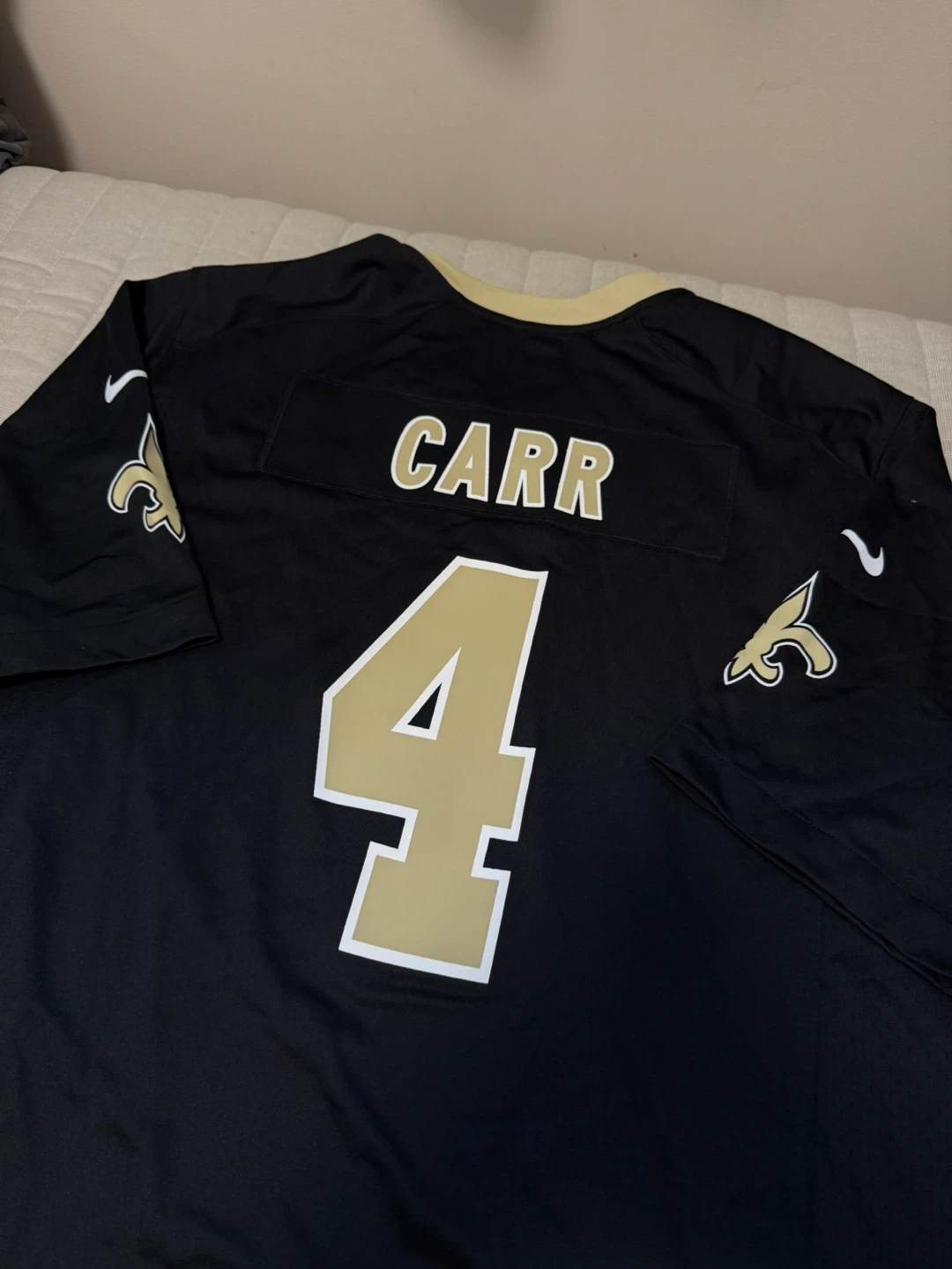 15Selling a Nike NFL New Orleans Saints jersey, featuring Carr #4. It's a size XXL. The colours are black and gold. Originally bought for $130