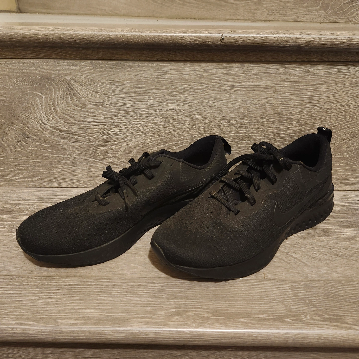 Selling a pair of Nike Odyssey React running shoes in black. They are in good condition and ready for a new owner. Great for running or everyday wear!