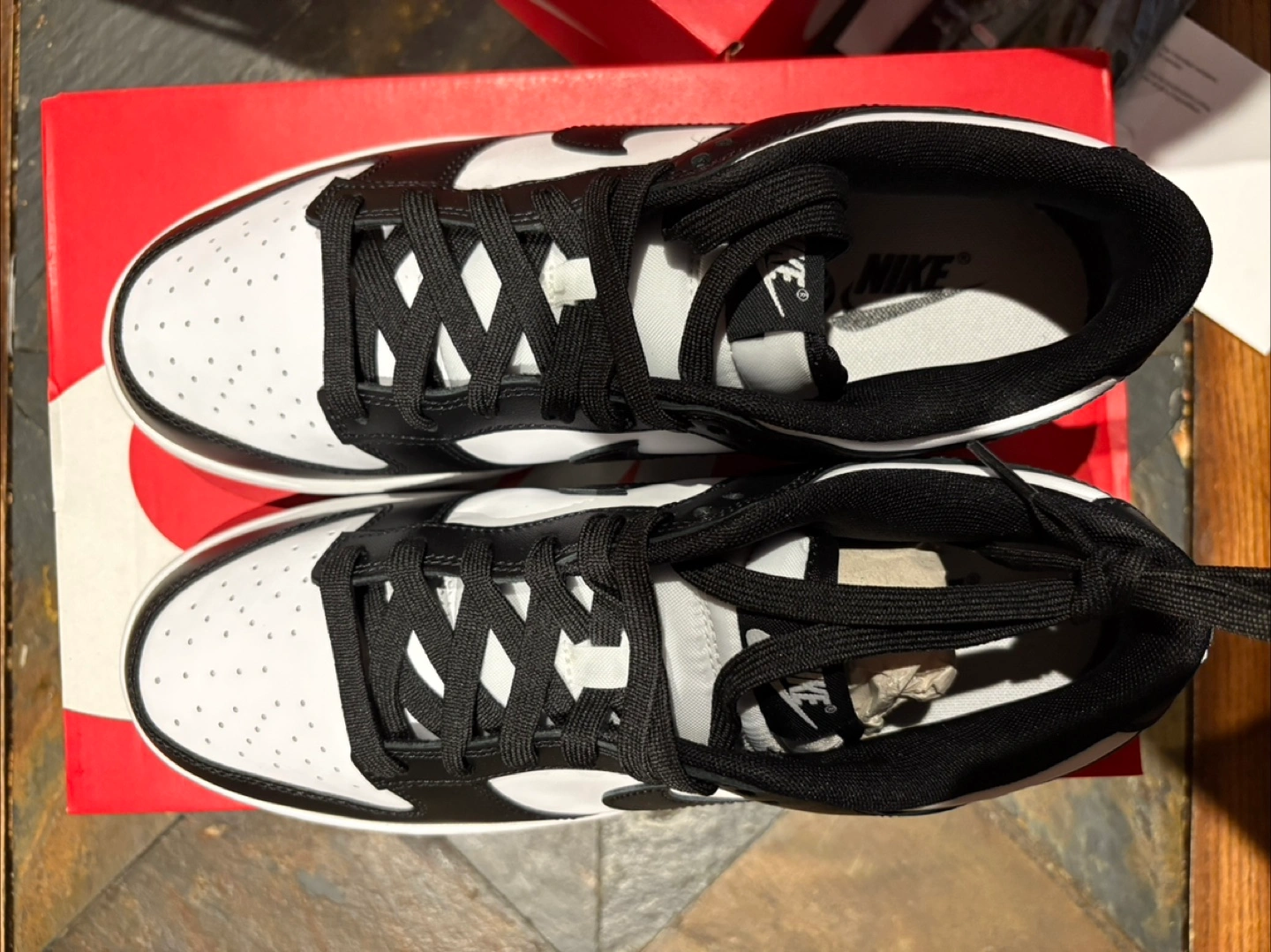 12Brand new, never worn Nike Dunk Low “Panda” in original box. Size: 9 100% authentic – perfect for casual wear or as a collector’s item. Classic black and white colorway that goes with everything. First come, first served. No holds. DM for more info or to grab them today!