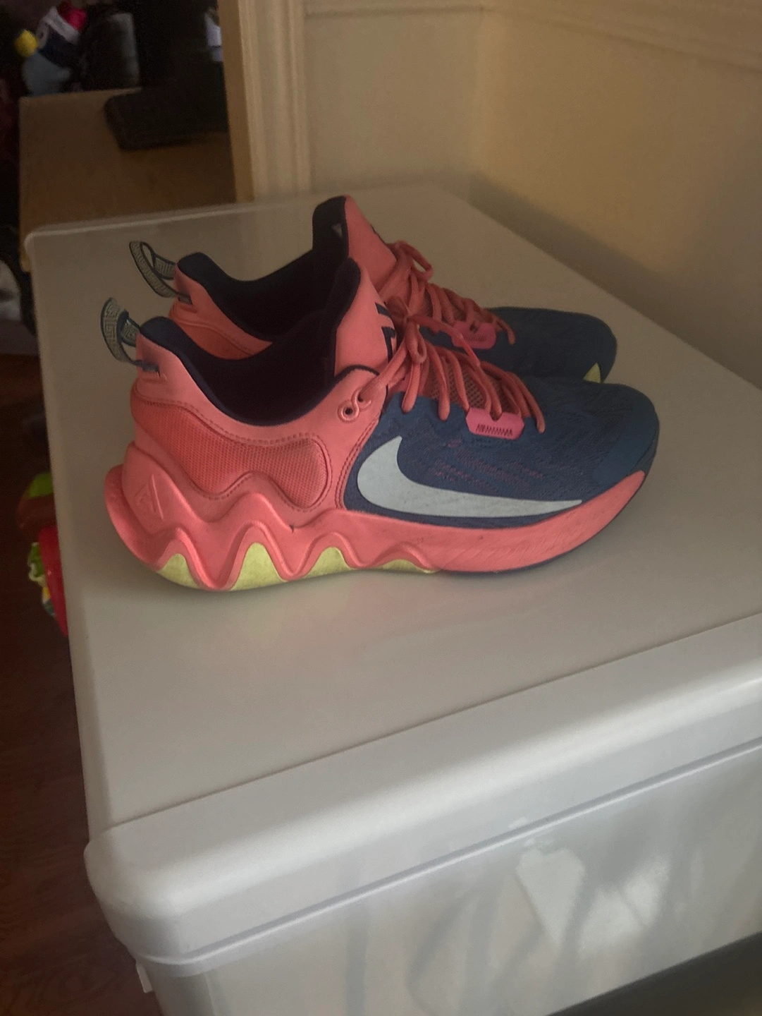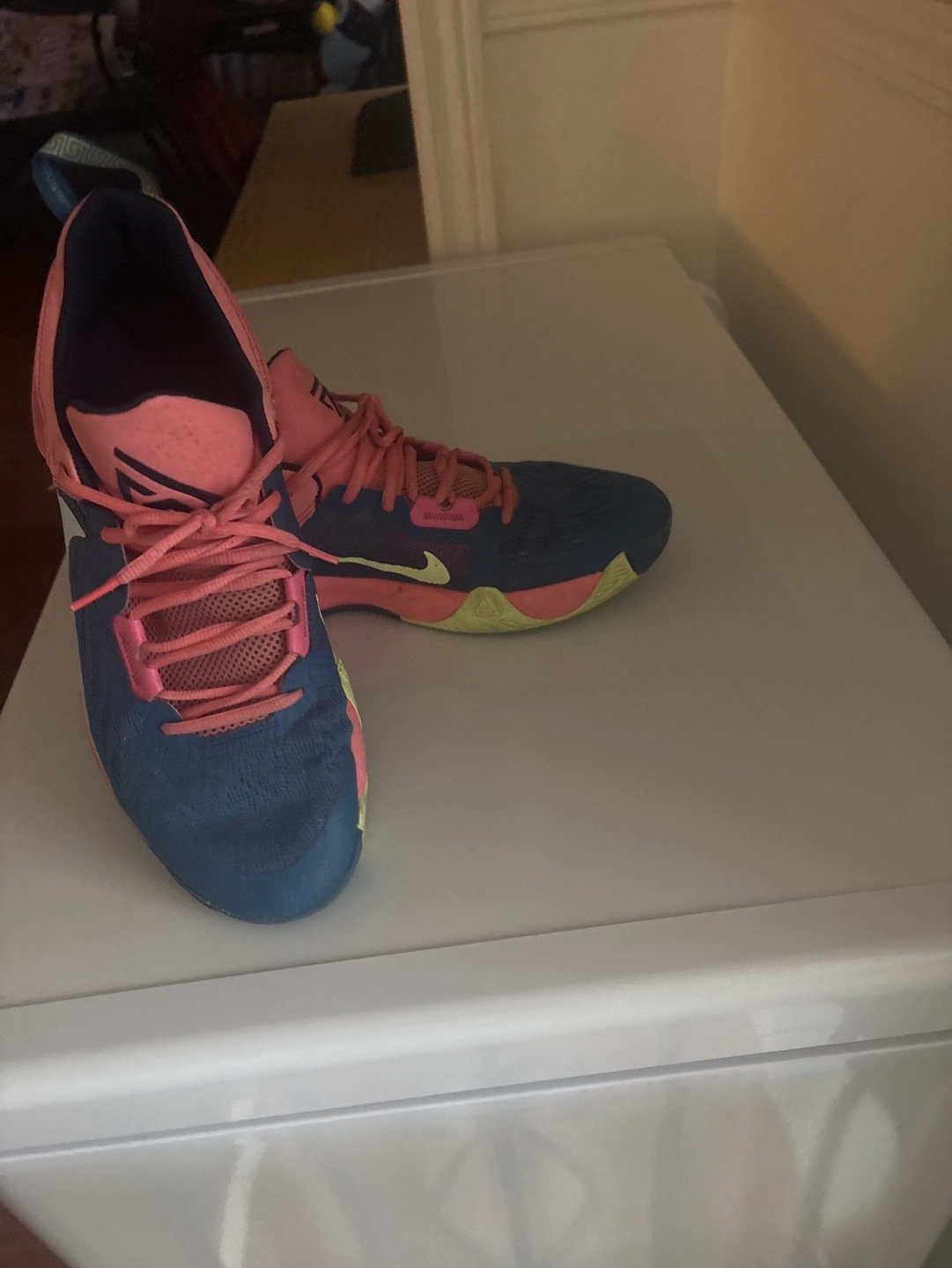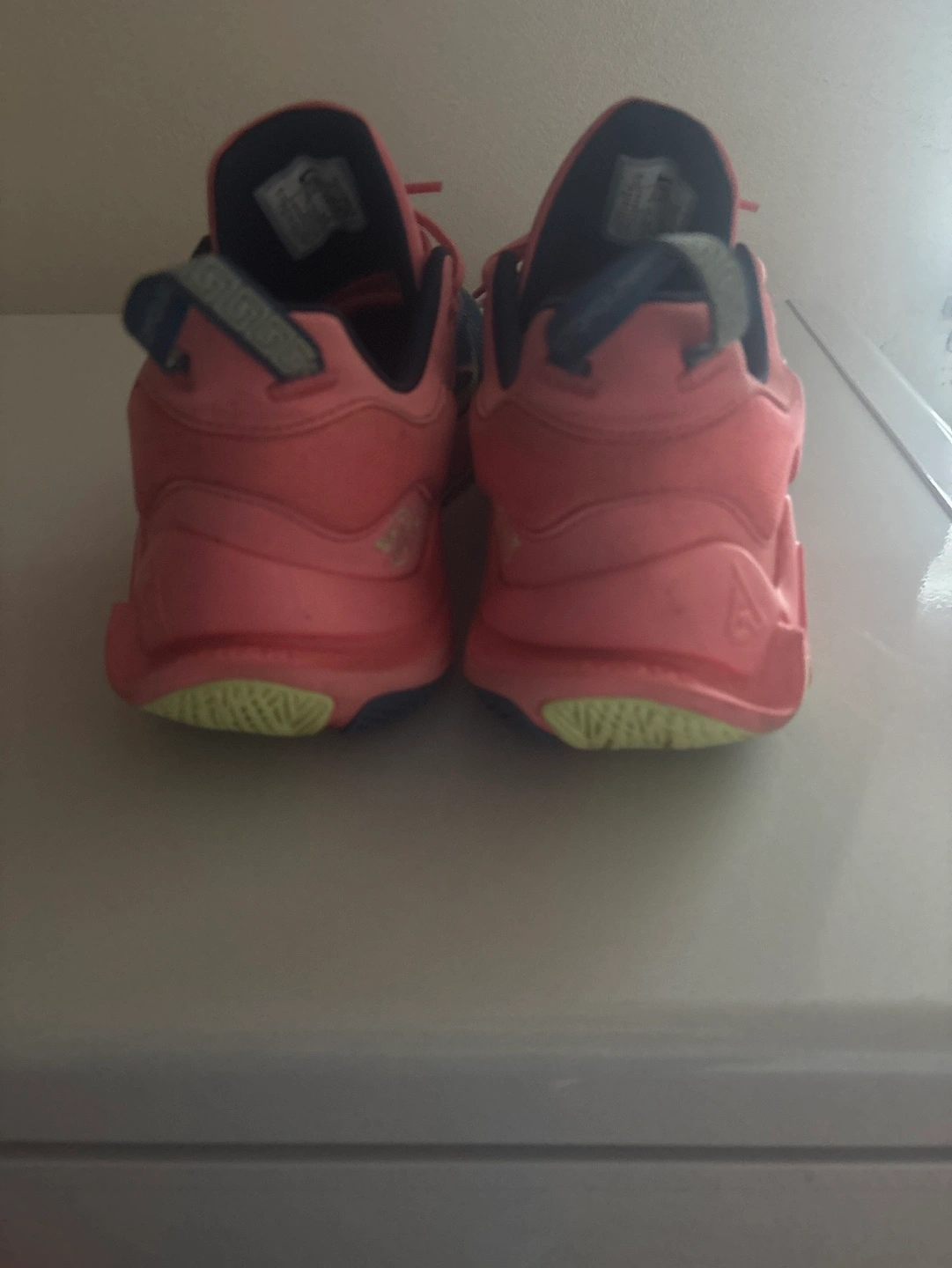 Men's Nike Paul George PG 6 basketball shoes. Size US 12. Pink and blue colourway. Good condition. Pre-owned.