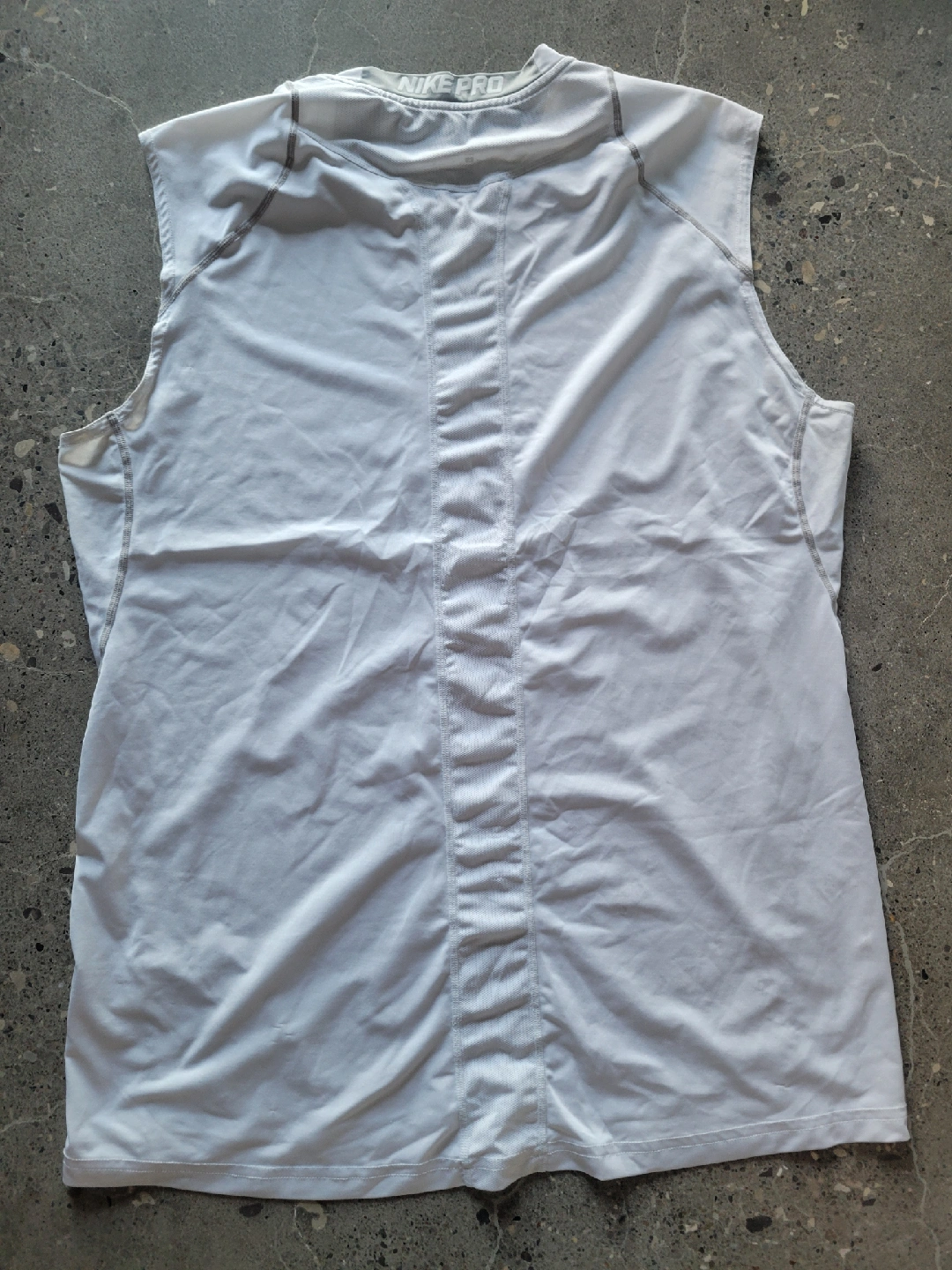 Selling a Nike Pro Dri-FIT sleeveless training top. It's in great condition and perfect for workouts or layering. This top features Nike's Dri-FIT technology to keep you cool and dry during exercise. The fabric is lightweight and breathable for maximum comfort. A great addition to your athletic wear!