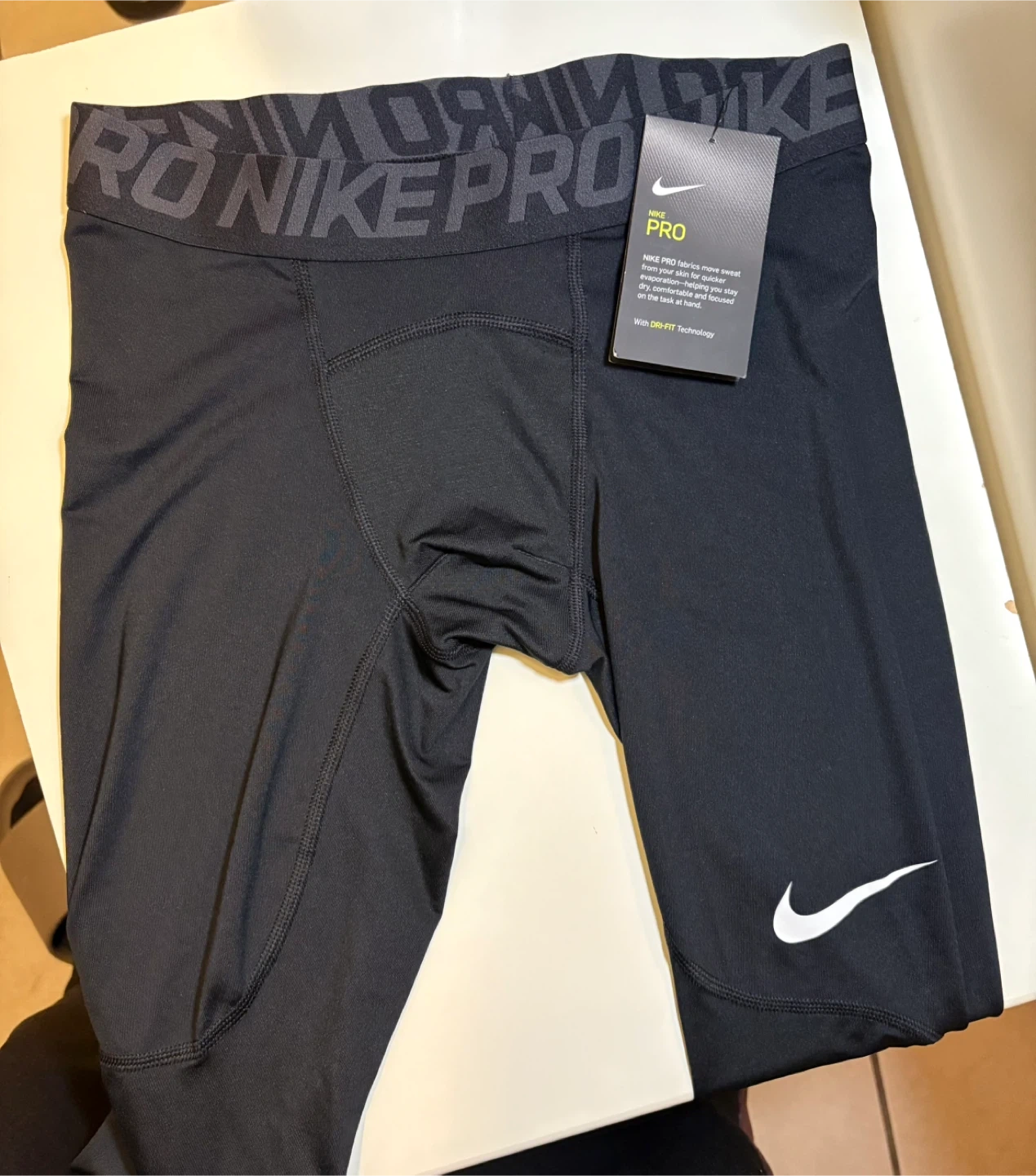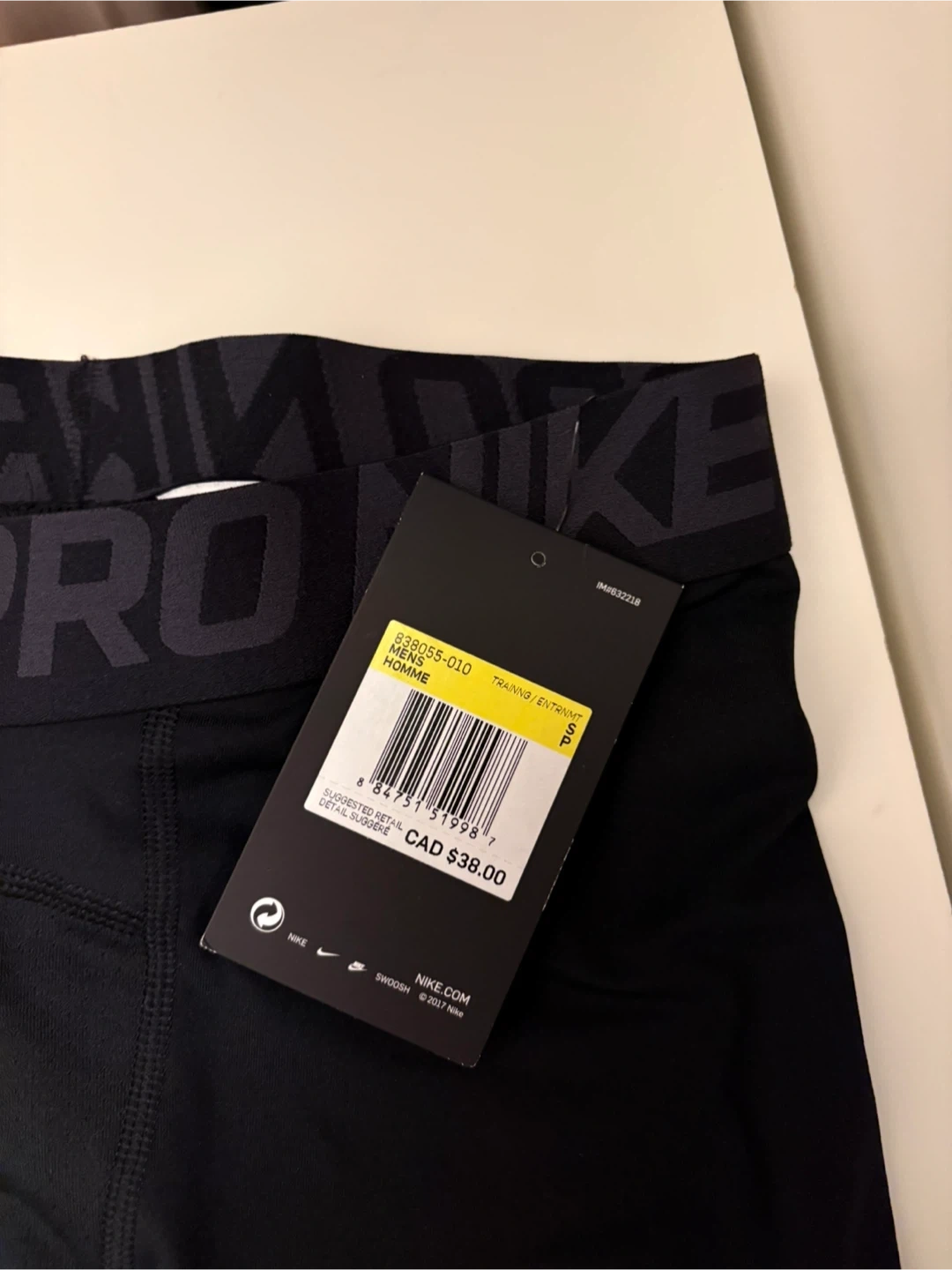 29Selling a new pair of Nike Pro men's training tights in size small! These are black and feature Nike's DRI-FIT technology, designed to move sweat away from your skin for quicker evaporation, helping you stay dry, comfortable, and focused. The original tag is still attached and shows they retail for $38 CAD