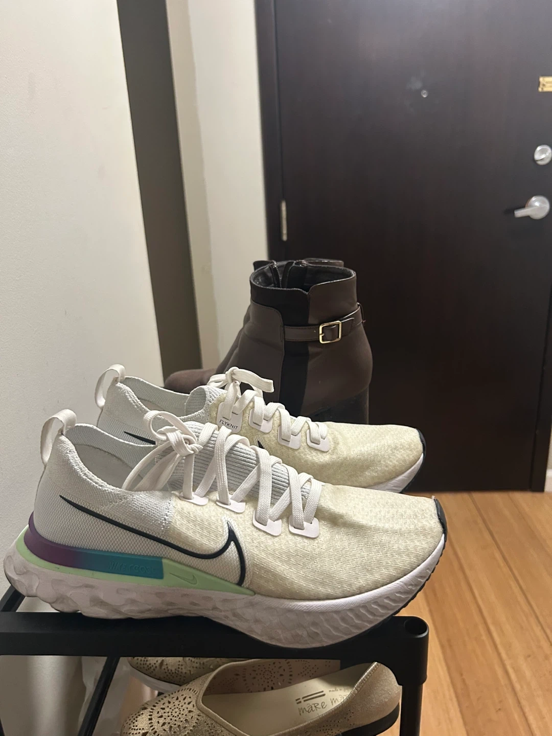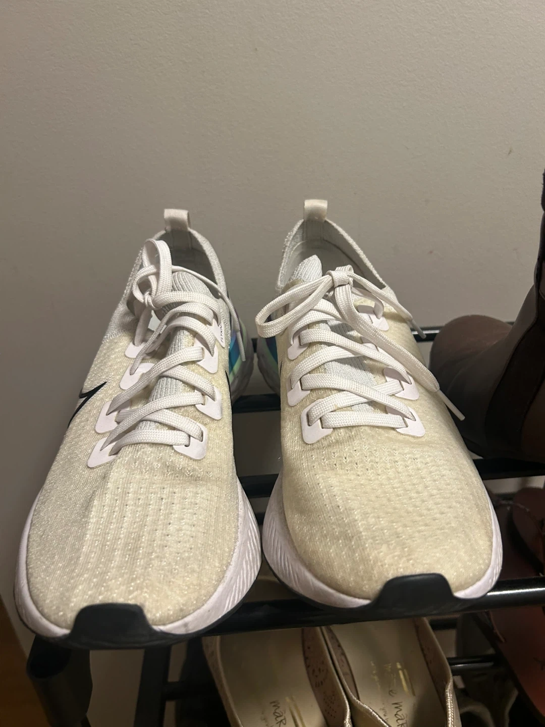 Selling a pair of Nike React Infinity Run Flyknit 3 men’s running shoes in size 9They are in good condition and ready for a new home! The shoes feature a white and cream colourway with a black Nike swoosh and a colourful accent on the sole.