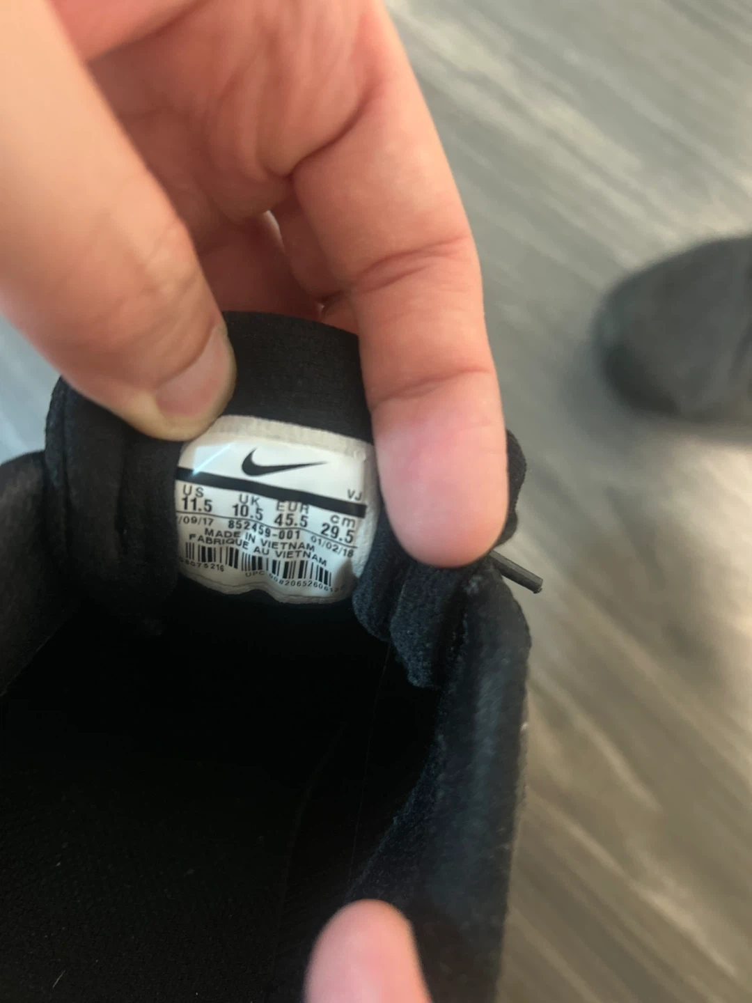 Selling a pair of Nike running shoes in size 11.5 US. They're black and in used condition, but still have lots of life left! Perfect for your daily run or workout