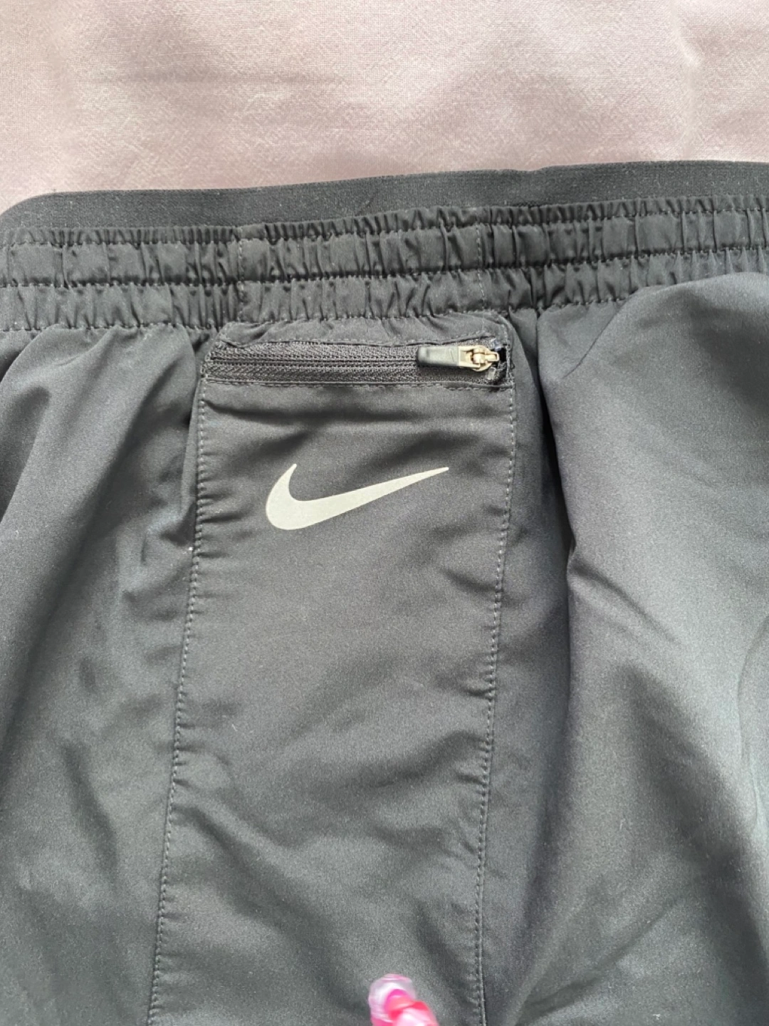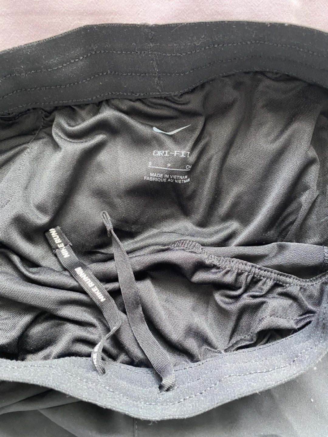 222Selling a pair of Nike running shorts in black. They're a size P, which is a small. These shorts feature Nike's Dri-FIT technology, perfect for keeping you cool and comfortable during your runs!