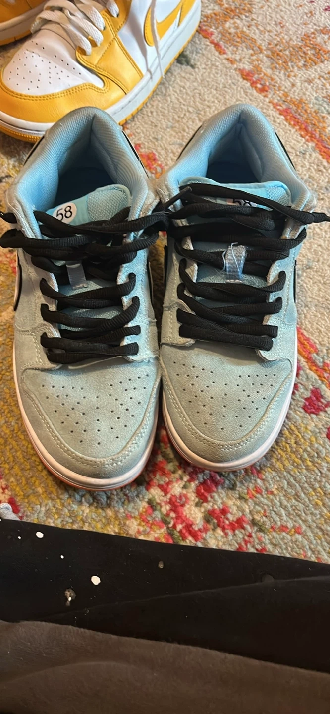 20Selling a pair of Nike SB Dunk Low Pro in the Blue Raspberry colourway. The shoes are a US size 7 and have been gently worn. The soles are orange and the uppers are a light blue suede. Great for skating or casual wear!
