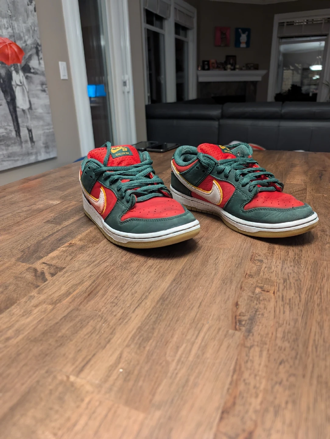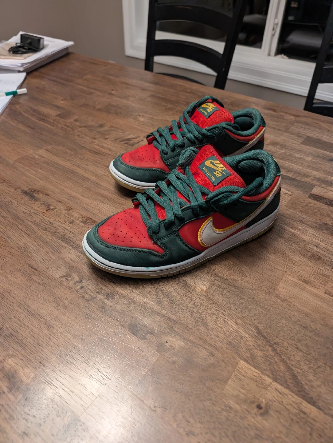 12Nike SB Dunk Low Seattle Supersonics size 8 US men. Comes with Green, Yellow and red laces (red ones are unused) Stock x verifyed, these are not fake. I have used them for some time, just want to get rid of them.
