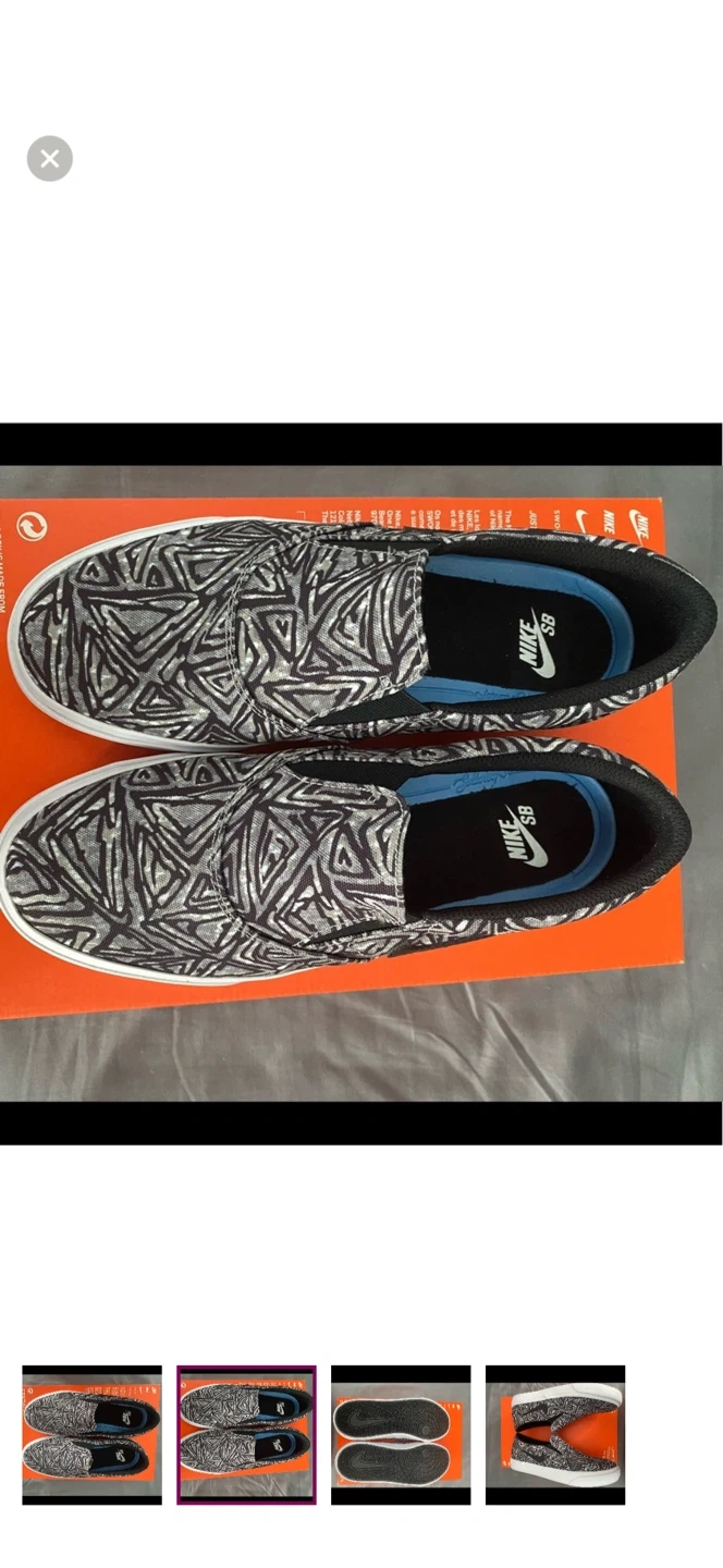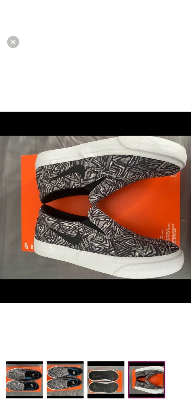 18These Nike SB slip-on shoes are in great condition! They feature a cool black and white geometric pattern. Perfect for skateboarding or just casual wear!