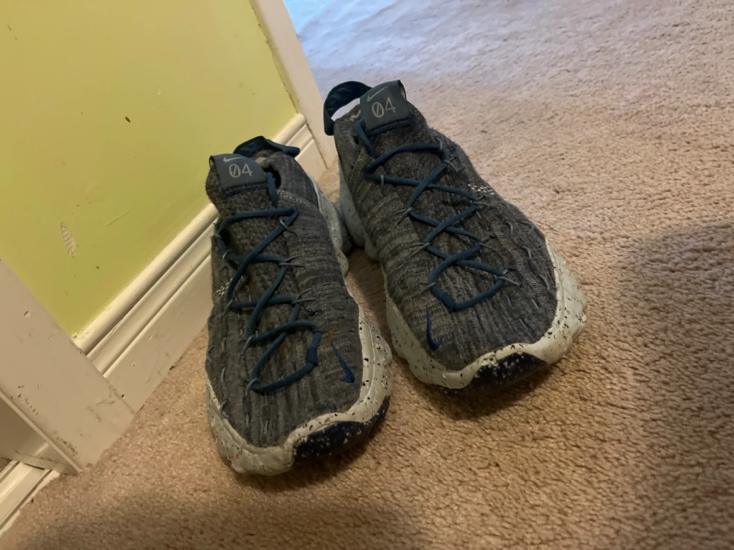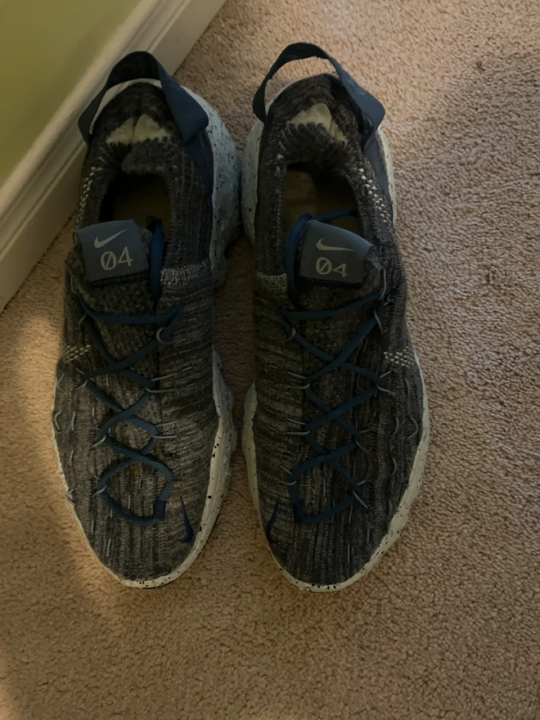 10Selling a pair of Nike Space Hippie 04 shoes! These are a unique and comfortable pair of sneakers. They have a speckled sole and interesting lacing system. Great for everyday wear!