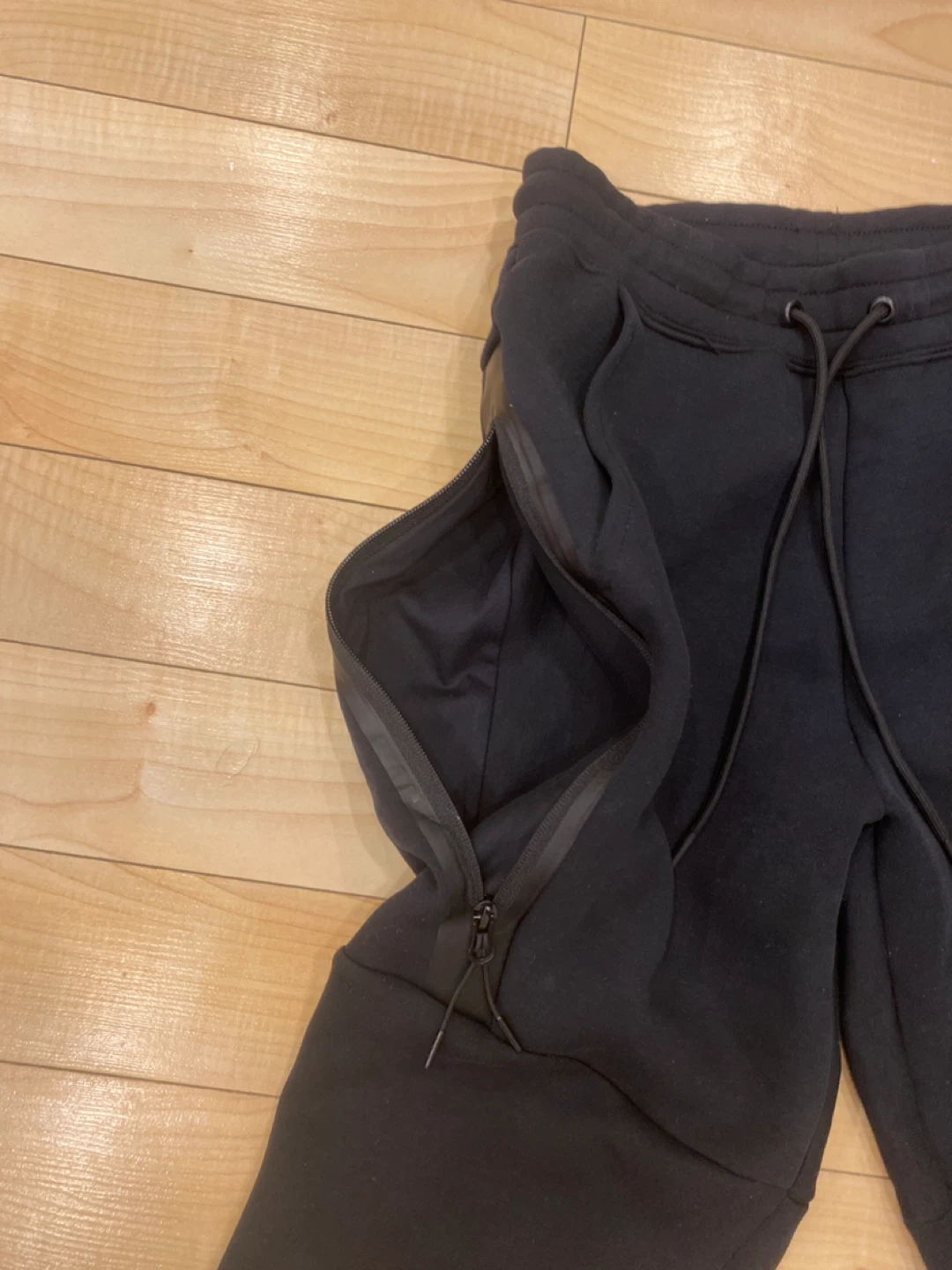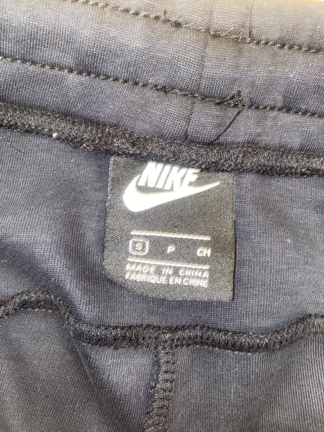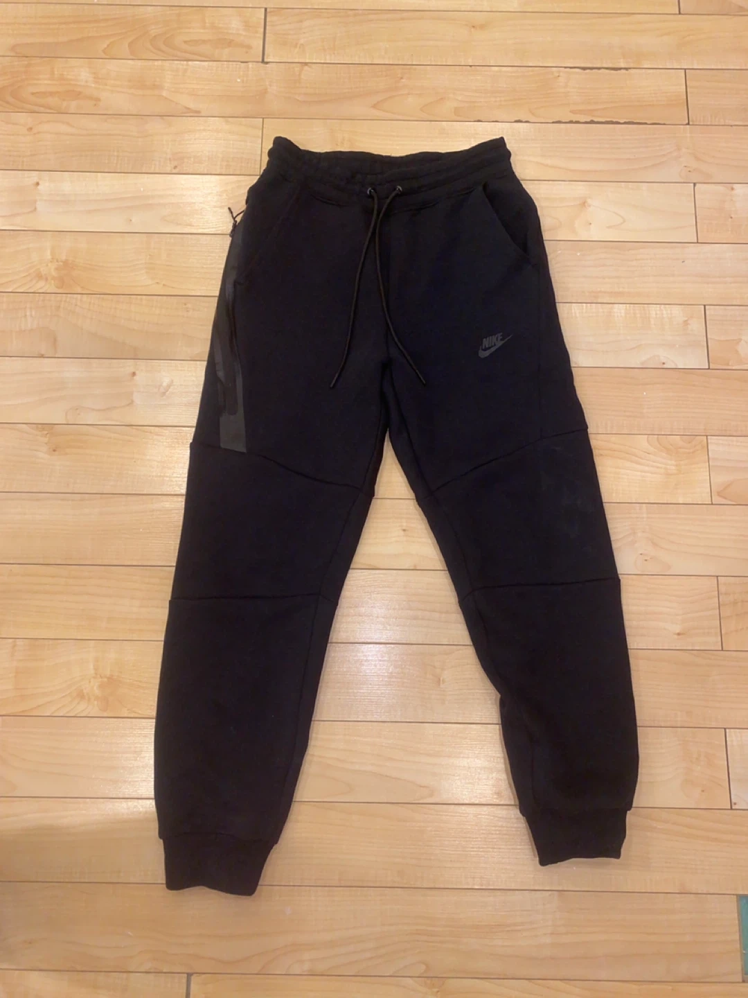 15Selling a pair of Nike Tech Fleece pants in black, size small. These pants are in great condition and feature the signature Tech Fleece material, making them super comfy and perfect for everyday wear. They have a sleek design with a zippered pocket on the side. A great addition to your wardrobe!