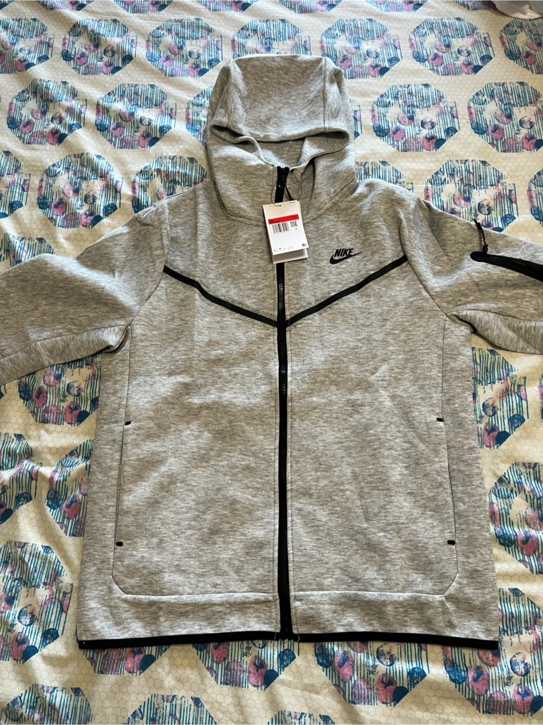 10Selling a Nike Tech Fleece set in grey! The set includes both the hoodie and the pants. The material is super comfortable and great for everyday wear. Perfect for staying cozy while looking stylish!