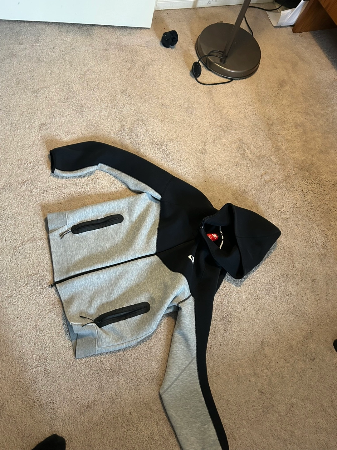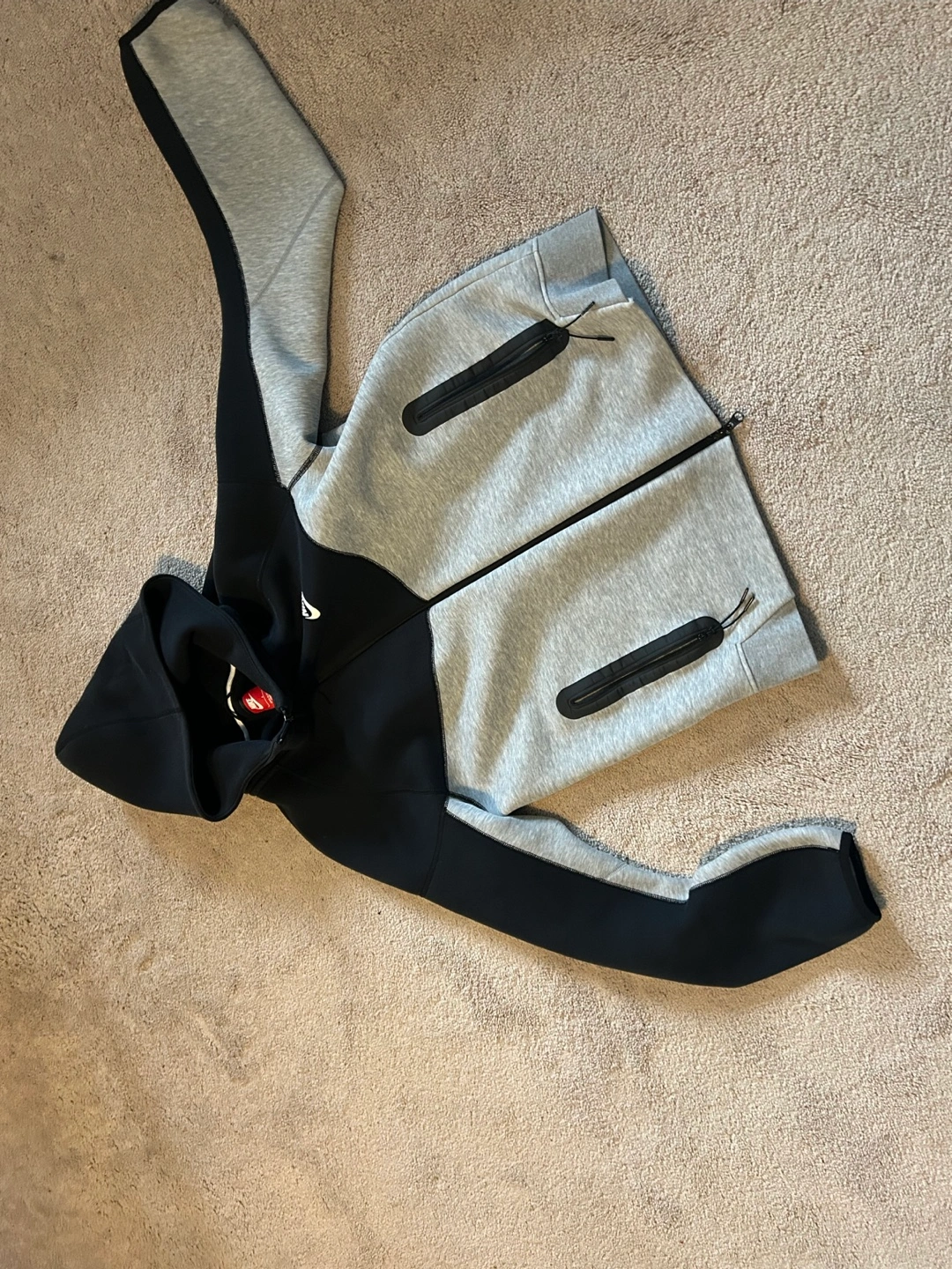 Men's grey and black Nike Tech Fleece hoodie. Full zip. Two pockets. Great condition.