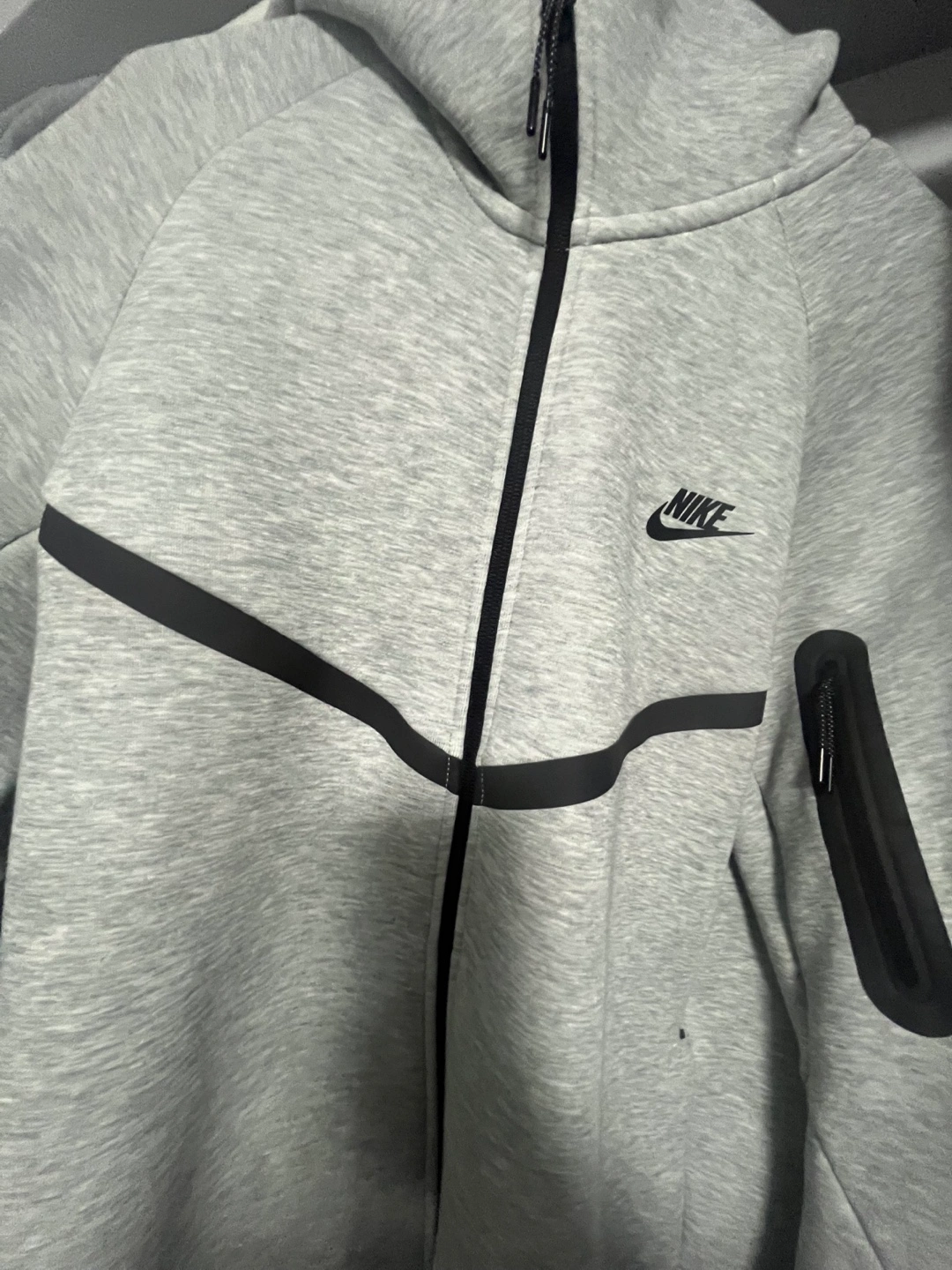 Selling a brand new grey Nike Tech Fleece hoodie in size medium. It's in great shape and super comfy for everyday wear! The material is soft and lightweight, perfect for layering or wearing on its own. The sleek design with the black accents makes it a stylish choice too