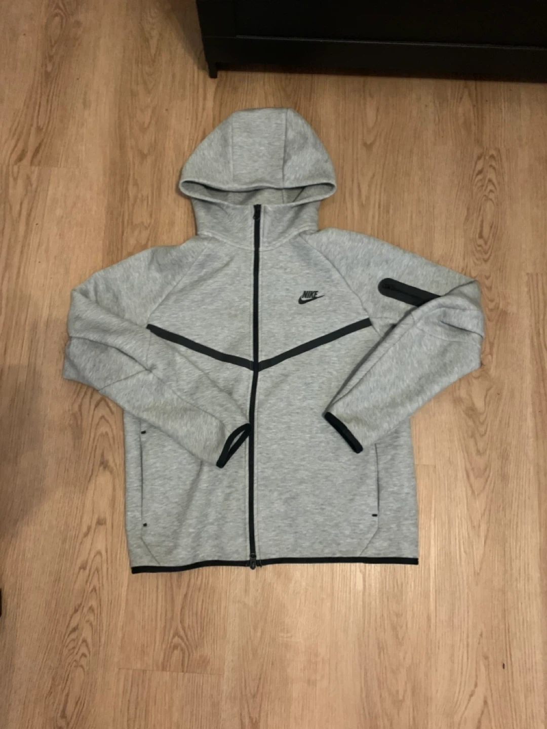 10Selling a Nike Tech Fleece hoodie in size medium. It's in great condition and ready for a new home! The colour is a versatile grey, perfect for layering or wearing on its own. It features the classic Tech Fleece design with a full zip and a comfortable fit.