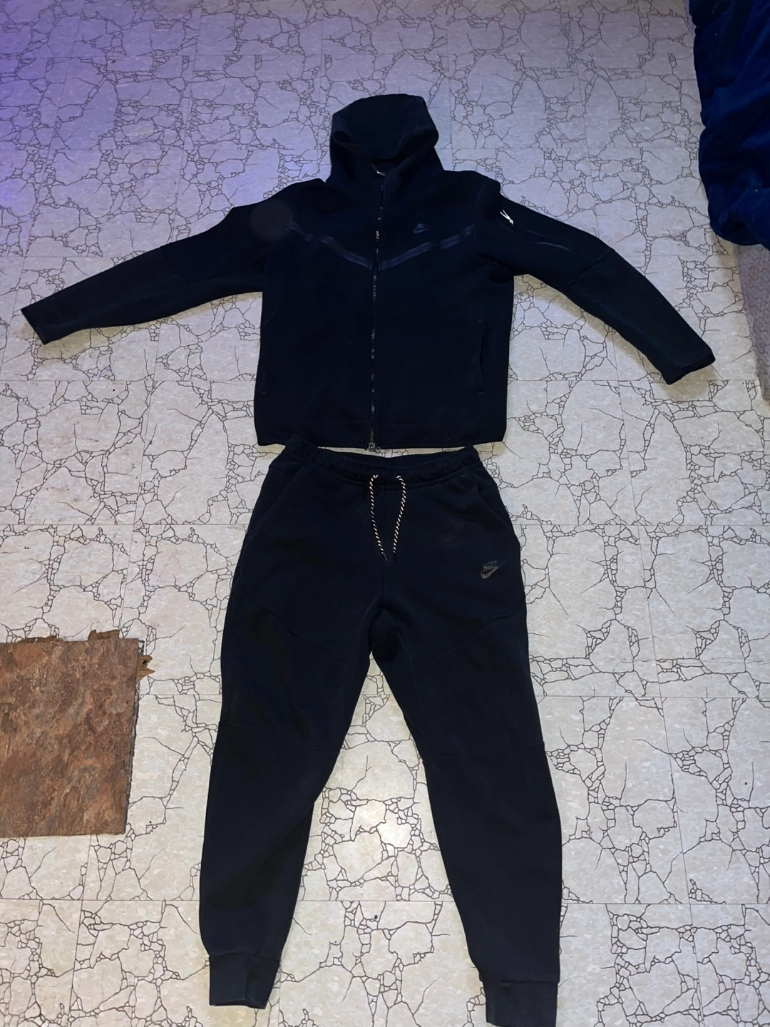 Black Nike Tech Fleece tracksuit. Full zip hoodie and joggers. Good condition. Hoodie Size Large Pants Small