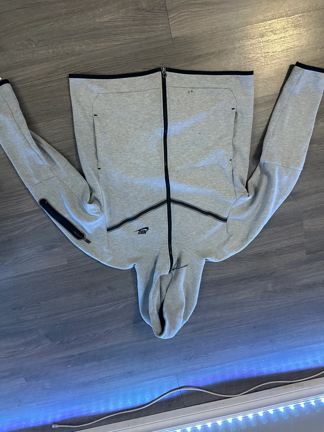 10Grey Nike Tech Fleece joggers and zip-up hoodie. Great for lounging or working out. Both pieces are in good condition. Size information not provided.