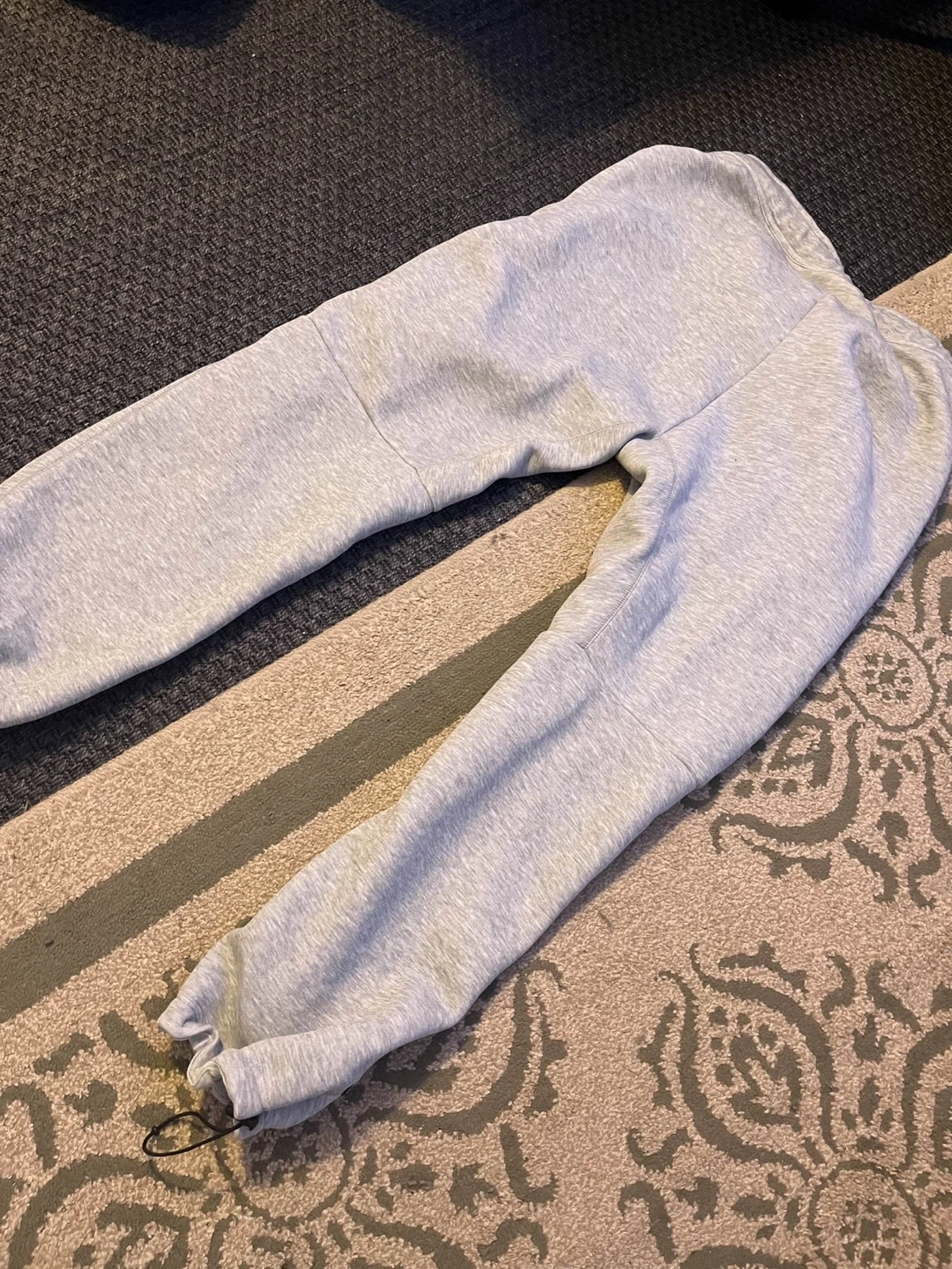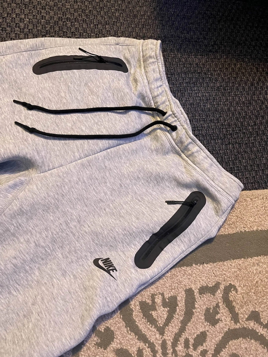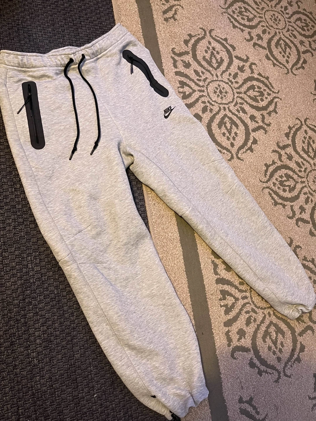 Selling a pair of Nike Tech Fleece pants in grey. They're in great condition and super comfy for lounging or working out! Features the iconic tech fleece design with zippered pockets.