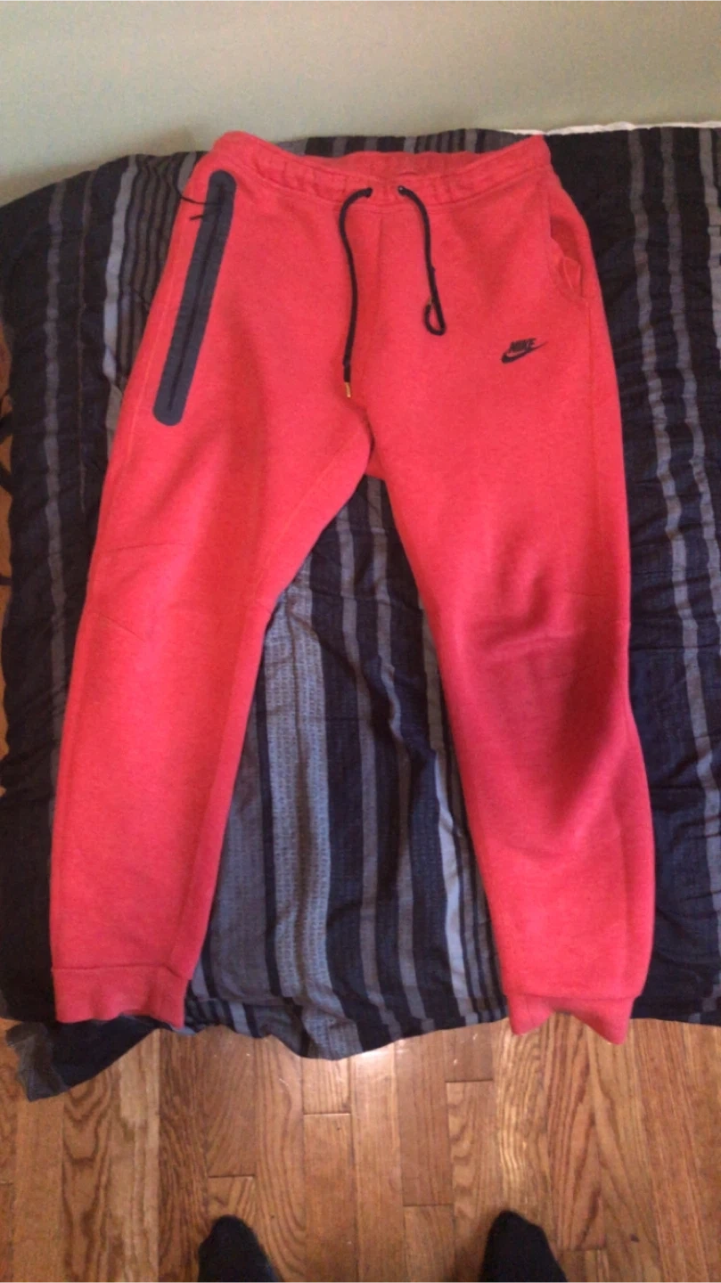 Selling a pair of Nike Tech Fleece pants in red! They're a size large and in great condition. Perfect for staying comfy and stylish.