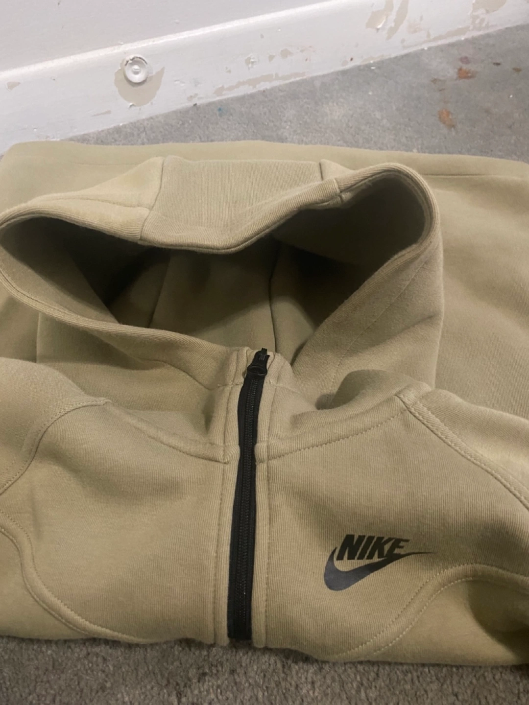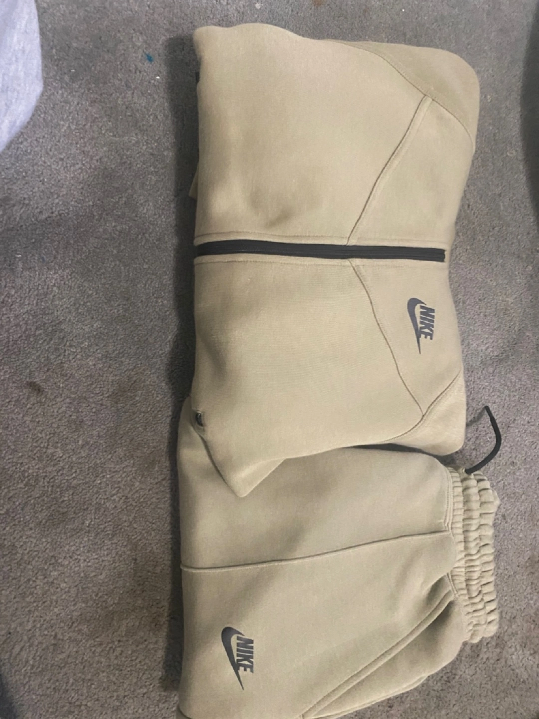 Selling a Nike Tech Fleece set in size medium. It's in great condition and super comfy for lounging or hitting the gym! The colour is a nice neutral tone. Perfect for staying cozy this season!