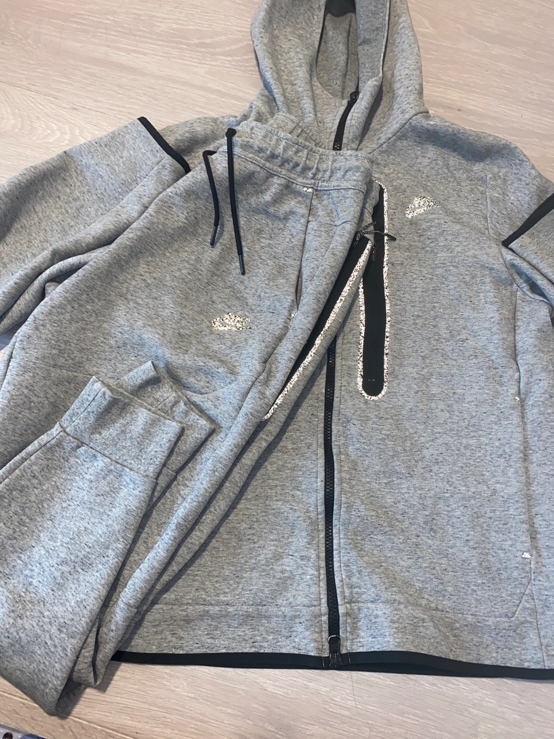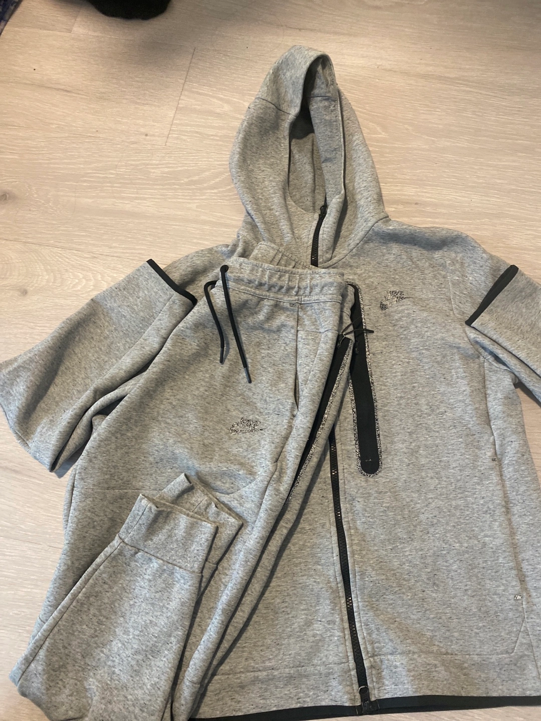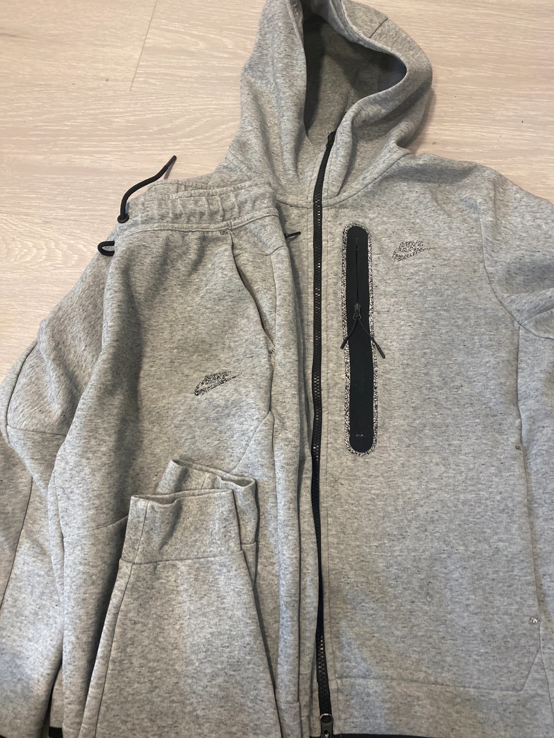 Grey Nike Tech Fleece tracksuit. Hoodie and jogger pants. Full zip hoodie. Minimalist design. Good condition.