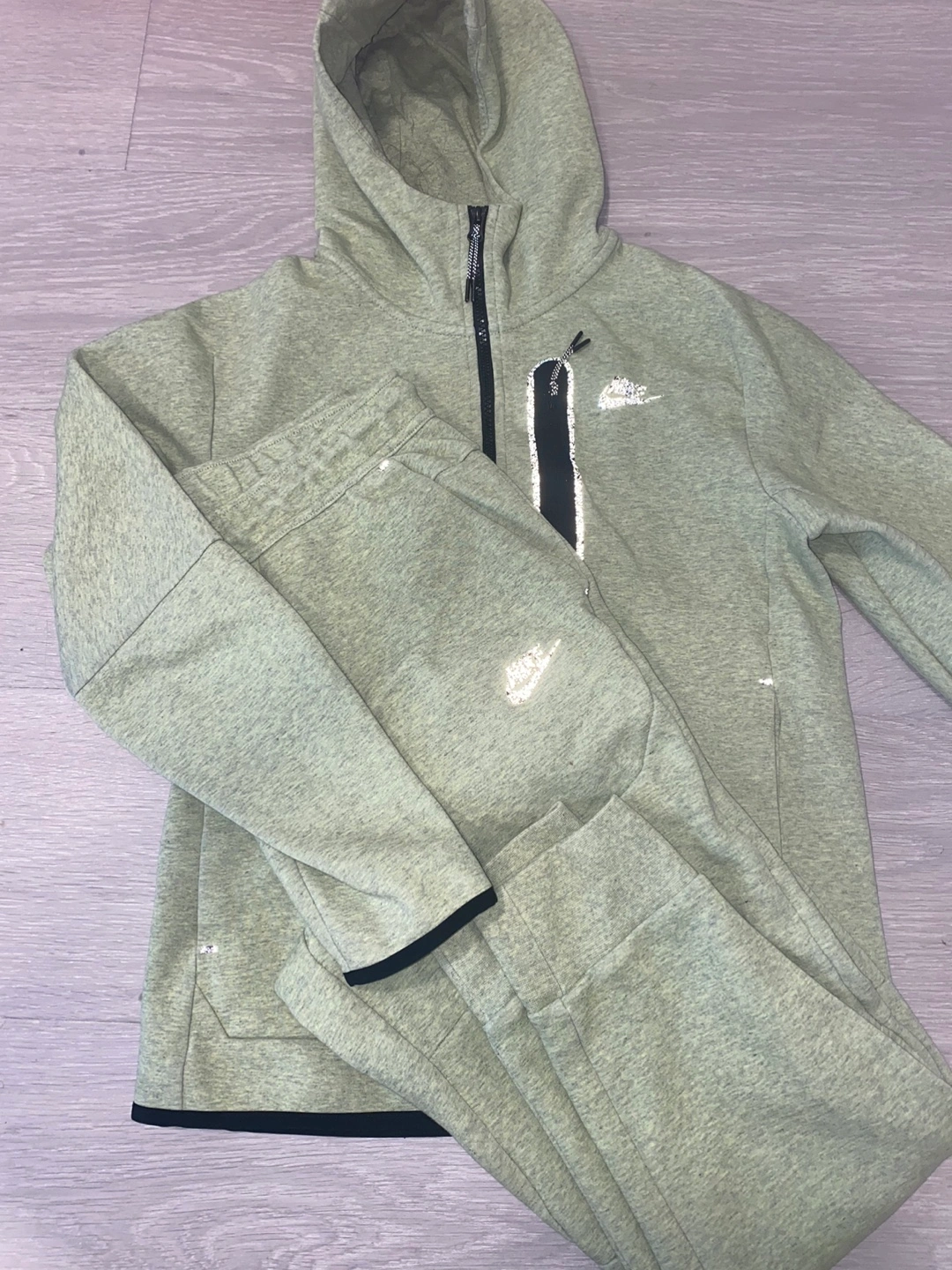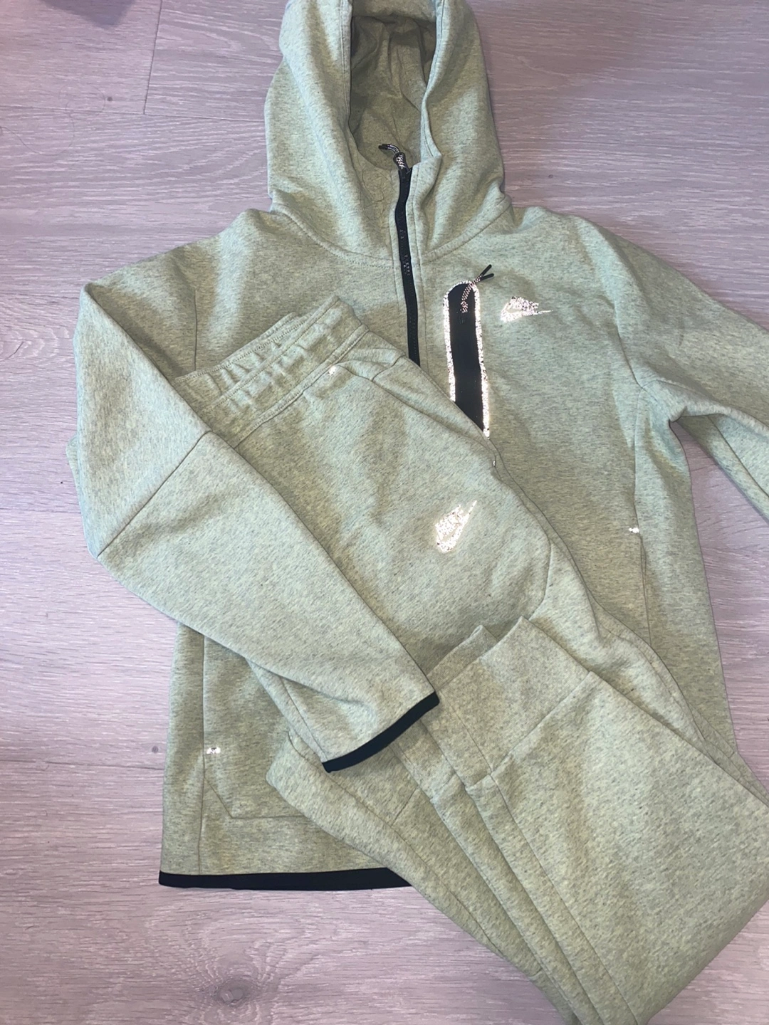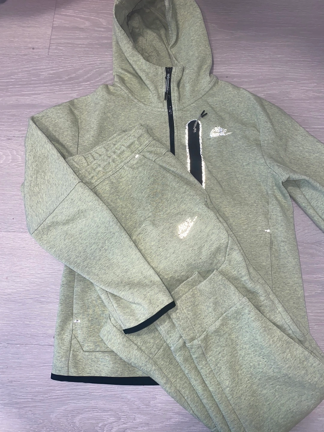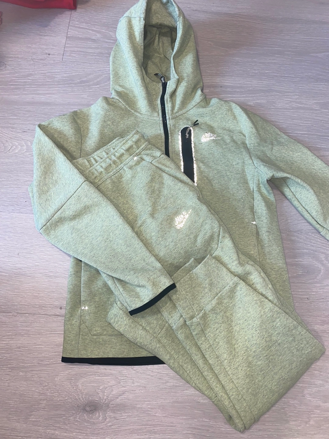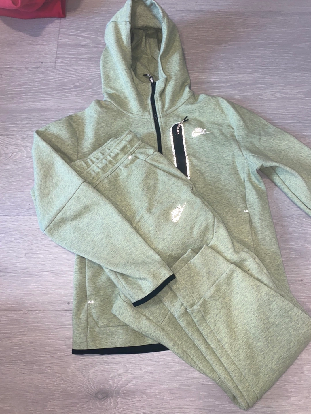 Men's Nike Tech Fleece tracksuit. Light green colour. Hoodie and jogger pants. Full zip hoodie. Drawstring waistband.