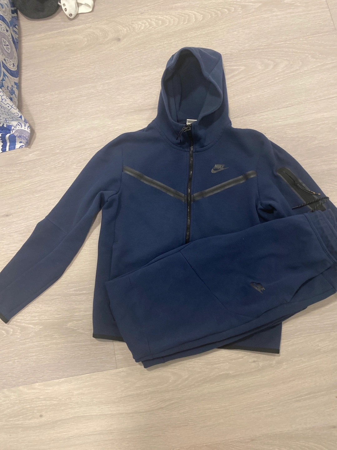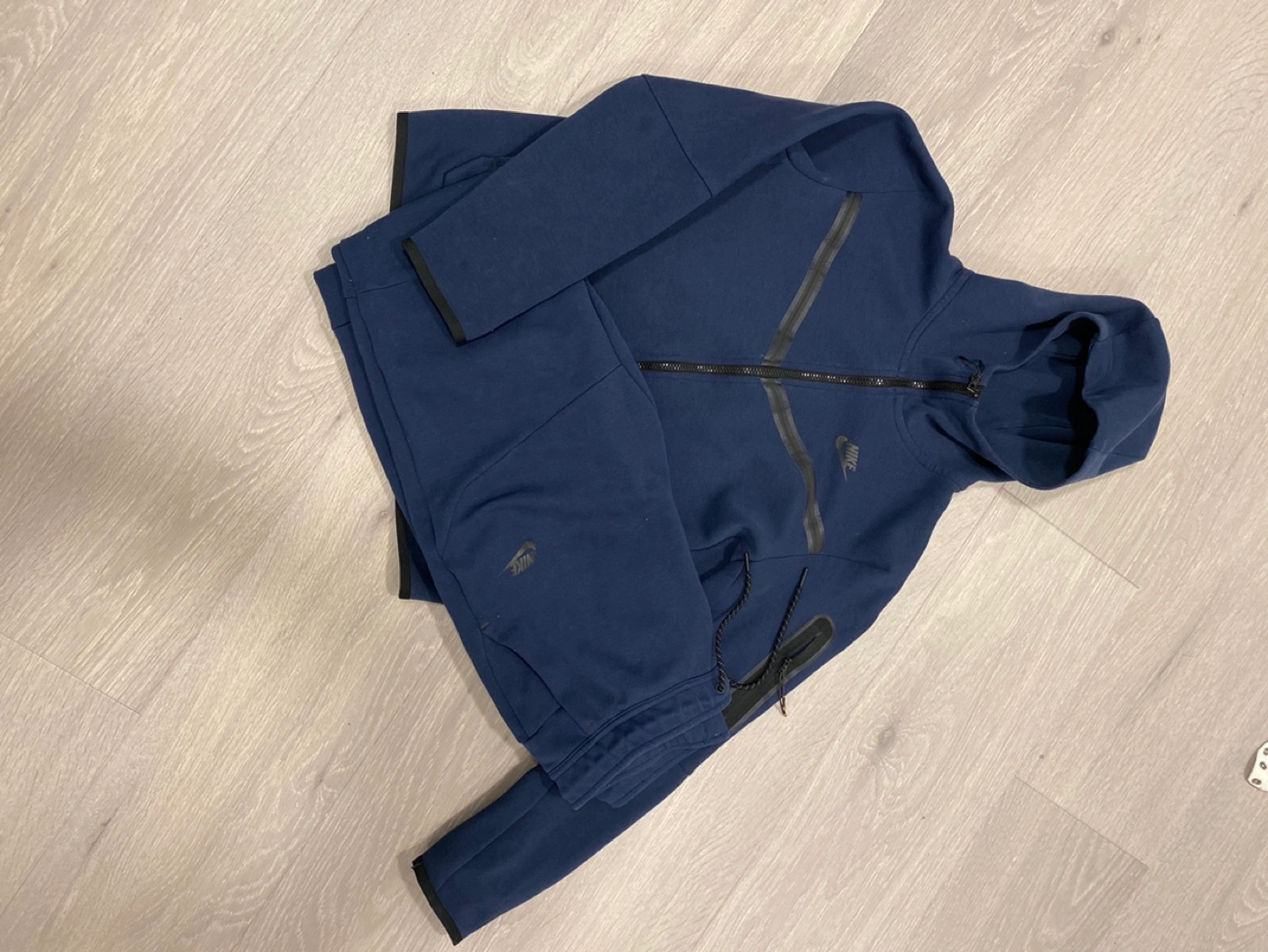 Navy blue Nike Tech Fleece tracksuit. Hoodie and jogger pants. Zip-up hoodie. Minimalist design. Excellent condition.