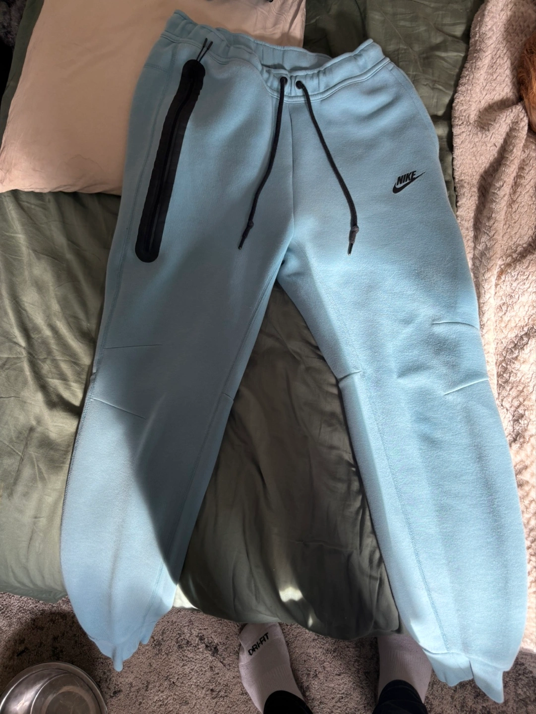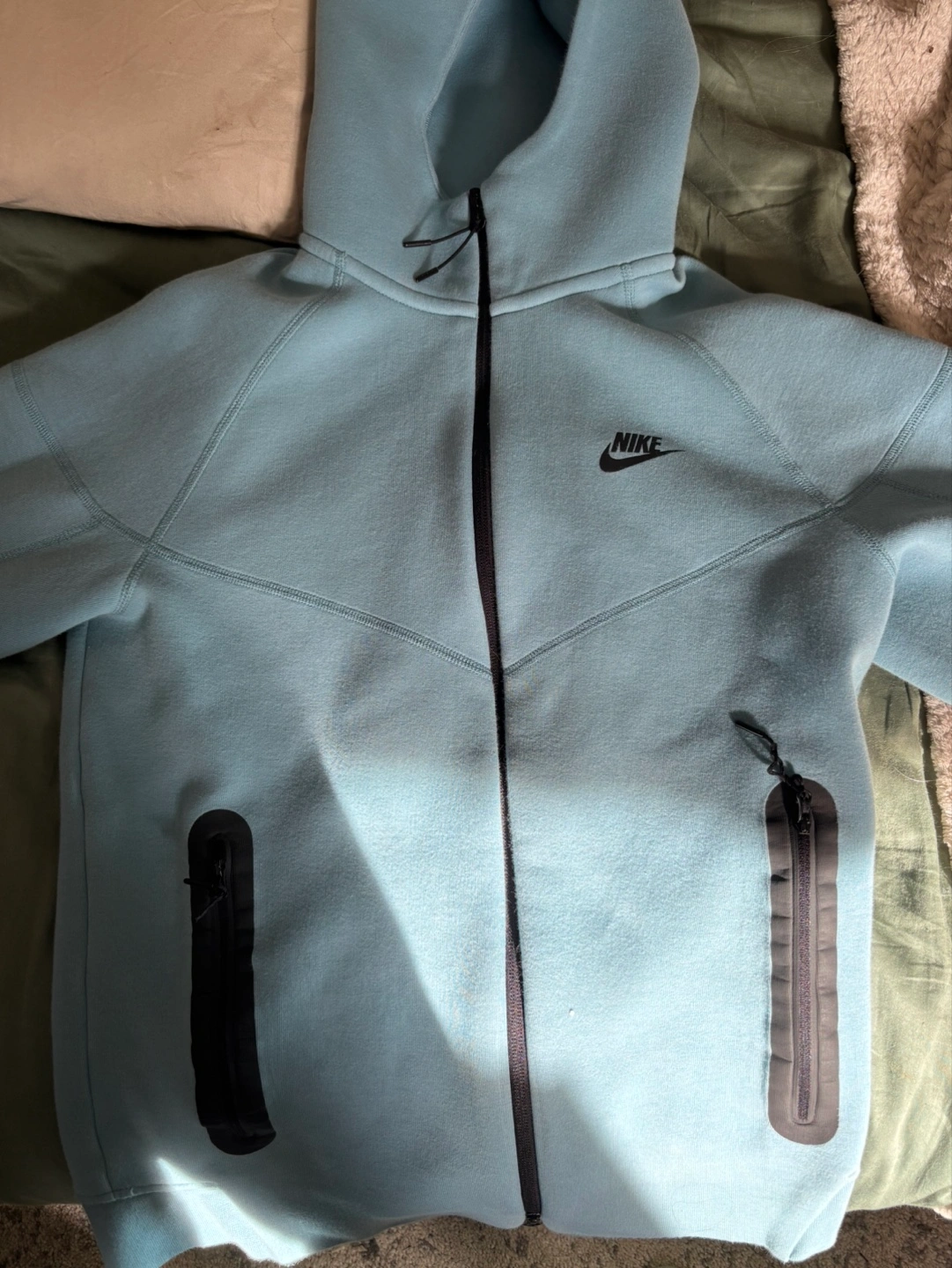 Nike Tech Fleece tracksuit. Light blue colour. Includes hoodie and sweatpants. Good condition.