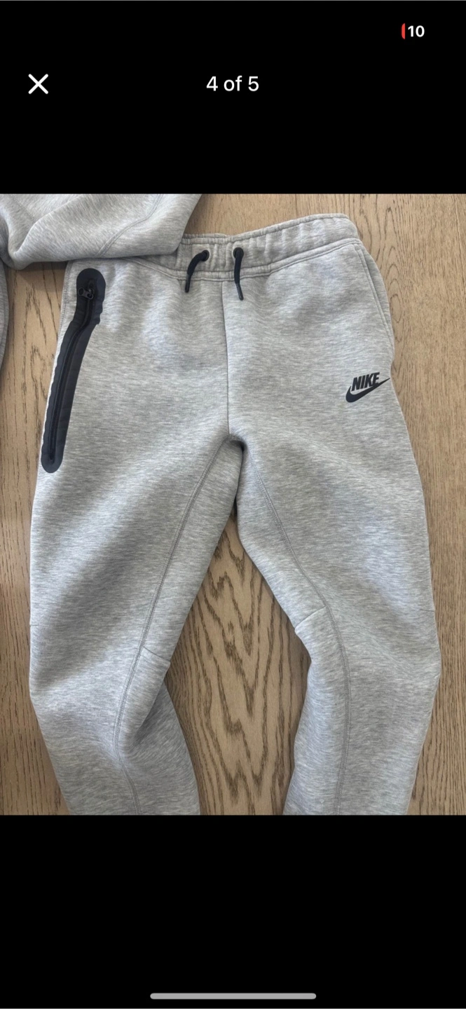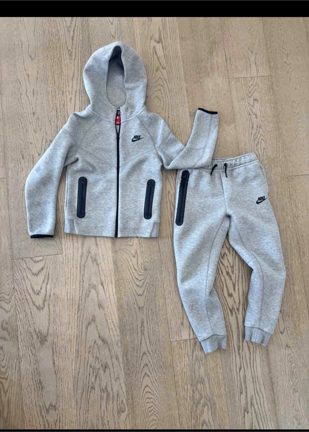 Grey Nike Tech Fleece tracksuit. Hoodie and joggers. Zip up hoodie with pockets. Joggers have pockets and drawstring waist. Excellent condition.(full sell)