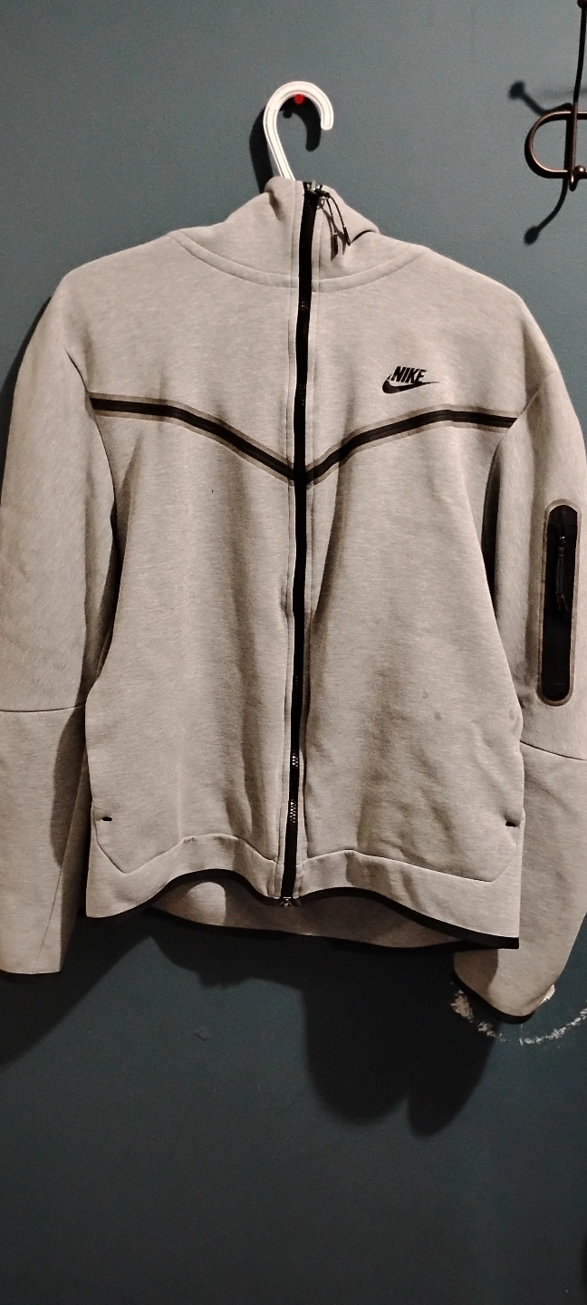 15Grey Nike Tech Fleece zip-up hoodie. Features a full-zip closure, a hood, and side pockets. Excellent for layering or casual wear pick up only.