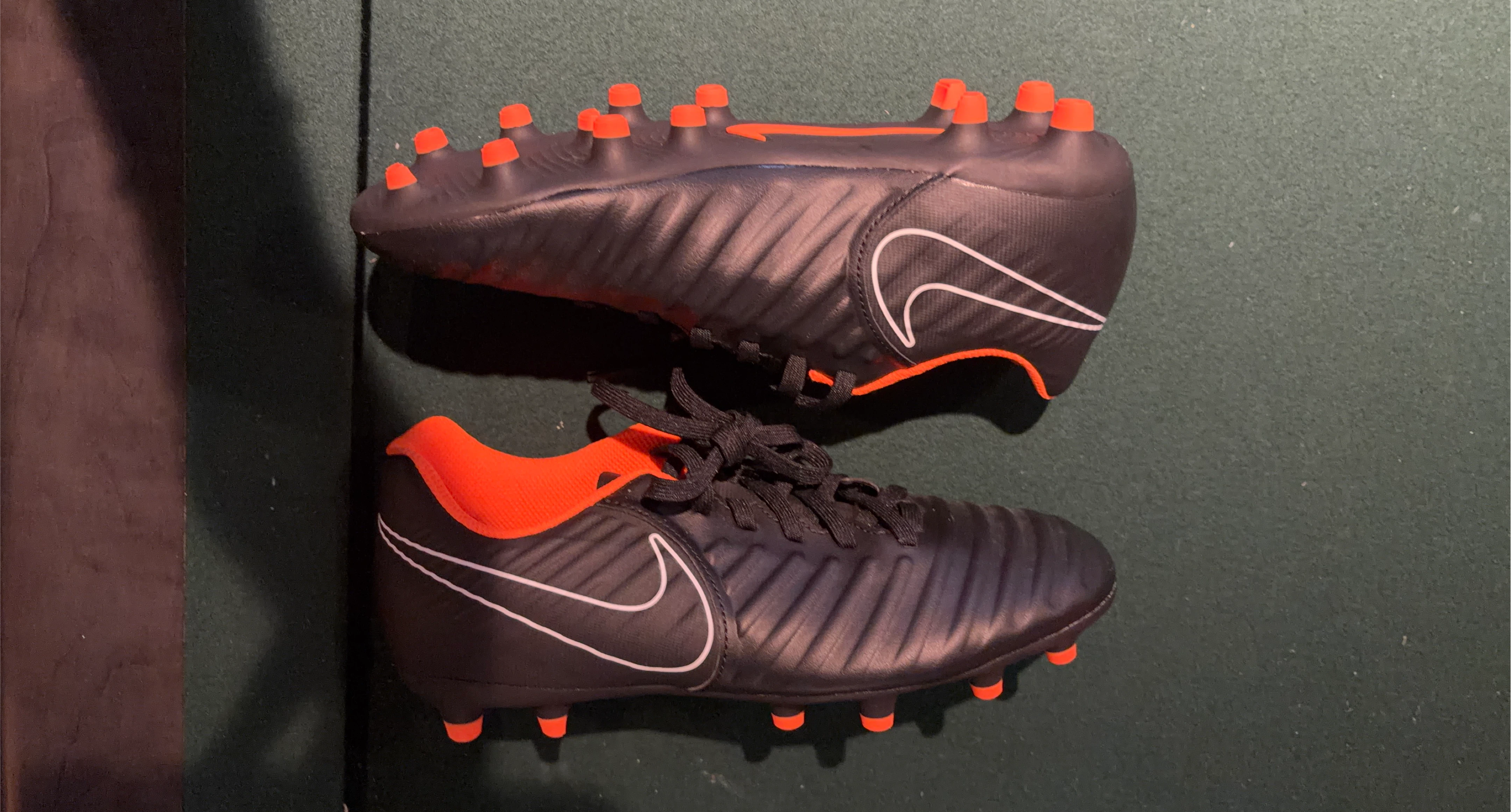 5Selling a pair of Nike Tiempo cleats in black with orange accents. They're in great shape and ready for the field! Size: 5