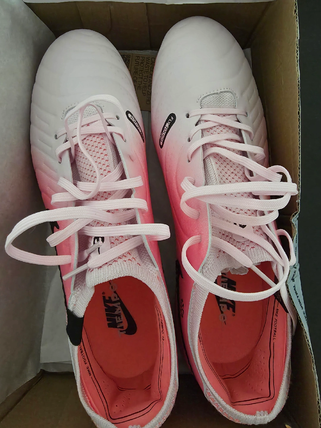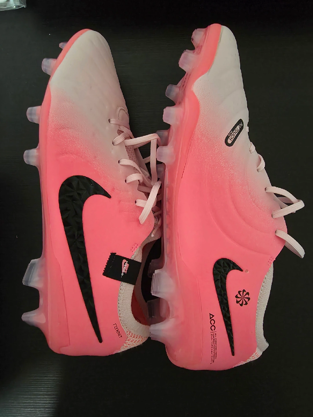 Selling a pair of Nike Tiempo Legend 10 FG soccer cleats in a lovely pink colour! These are in great condition and come with the original box. They're a size 9.5 (US/CA). Perfect for your next soccer game!