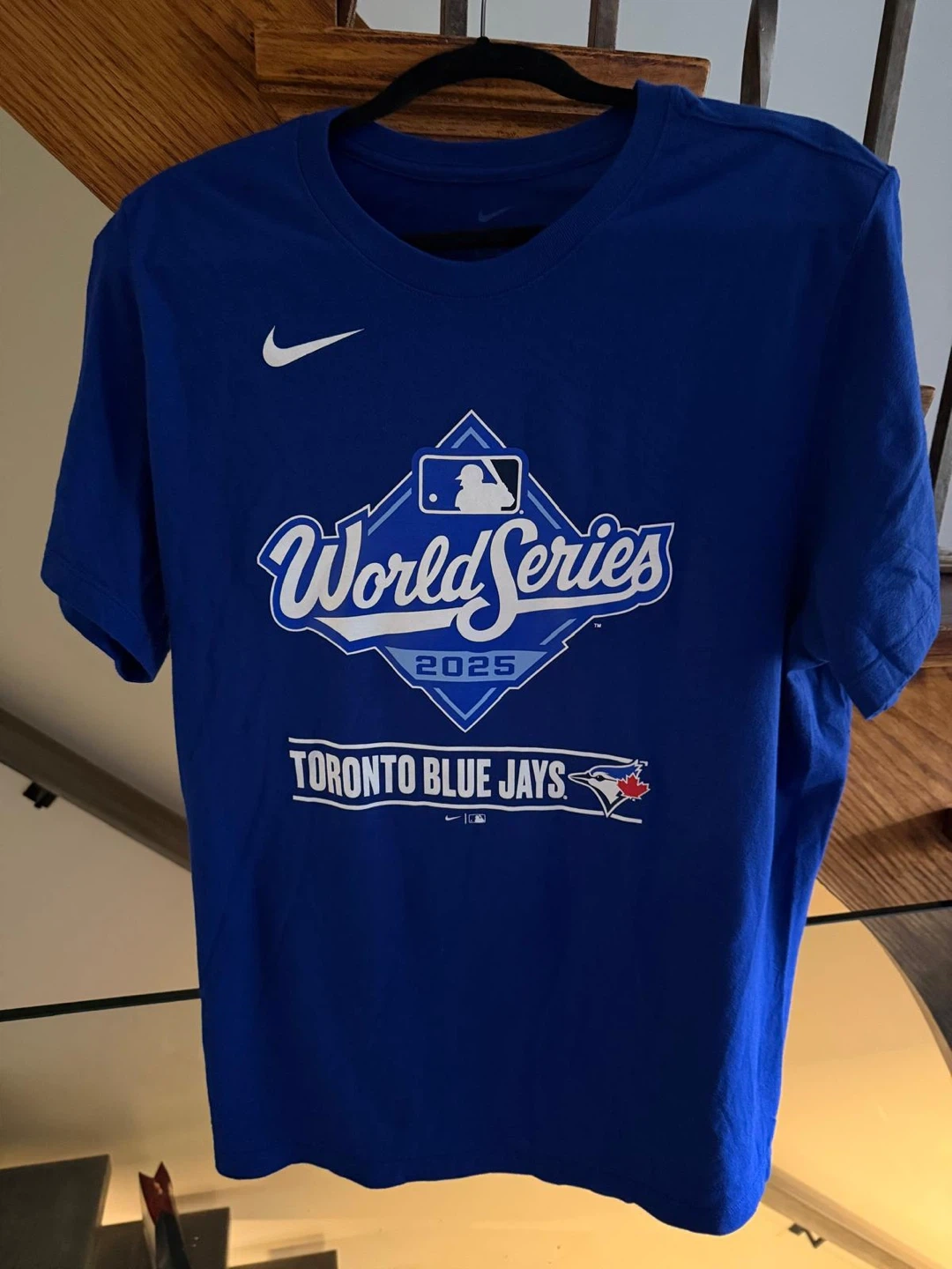 65Get ready for the 2025 World Series with this Toronto Blue Jays T-shirt by Nike! The shirt is a vibrant blue and features the official World Series 2025 logo. Show your team spirit!