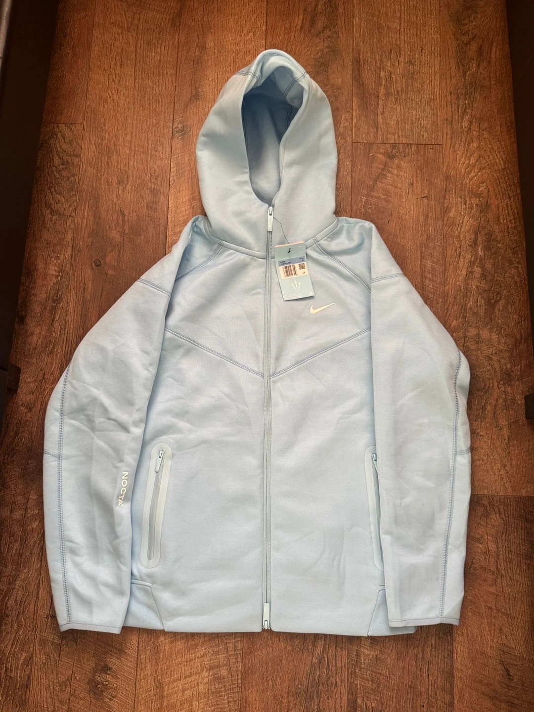 60Selling a brand new Nike x Drake NOCTA matching set! This set includes the hoodie and pants, both in a beautiful light blue colour and size medium. Never worn, still with tags attached. Perfect for staying comfy and stylish!