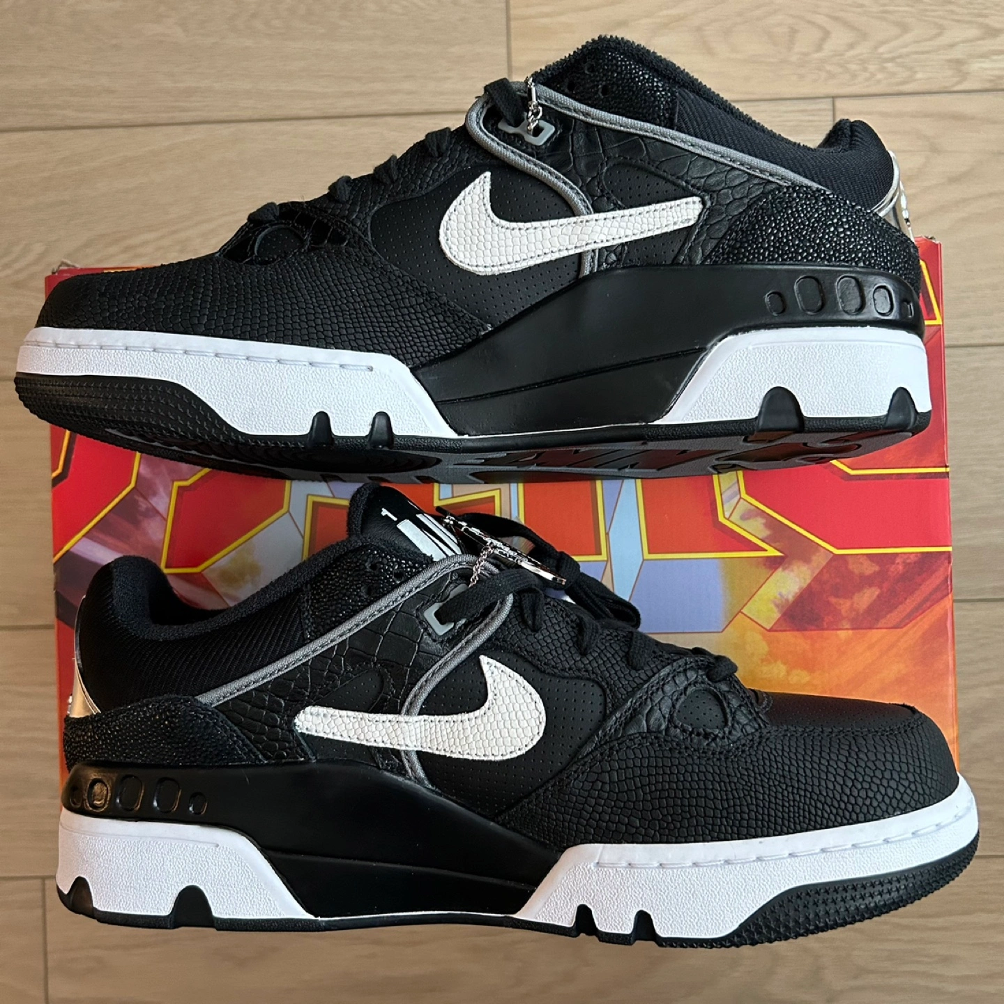 Continuing their creative partnership, the Nike x NIGO Air Force 3 Low SP “Black Croc” delivers a bold, luxury-inspired look. Crafted with a premium leather upper and tonal crocodile-embossed overlays, this silhouette combines texture and depth. Metallic heel accents and custom co-branded lace charms elevate the style, while classic Nike Air cushioning and a durable rubberized outsole ensure all-day comfort and support. Key Features: • Premium leather upper • Crocodile-embossed leather overlays • Metallic accents with co-branded details • Nike Air cushioning • Rubberized outsole for traction • Black / White – Smoke Grey colorway • Product Code: HF7630-001