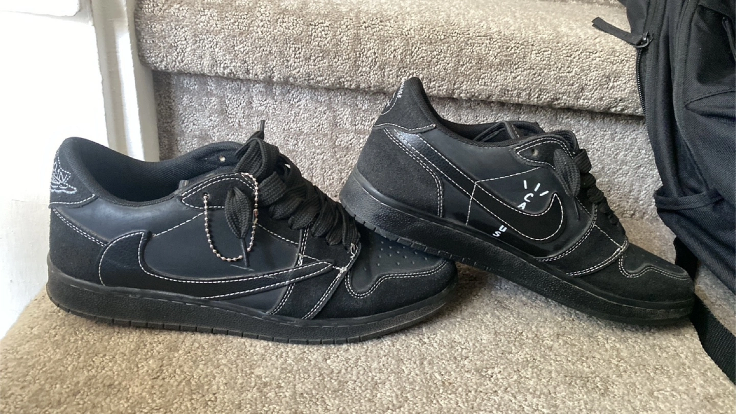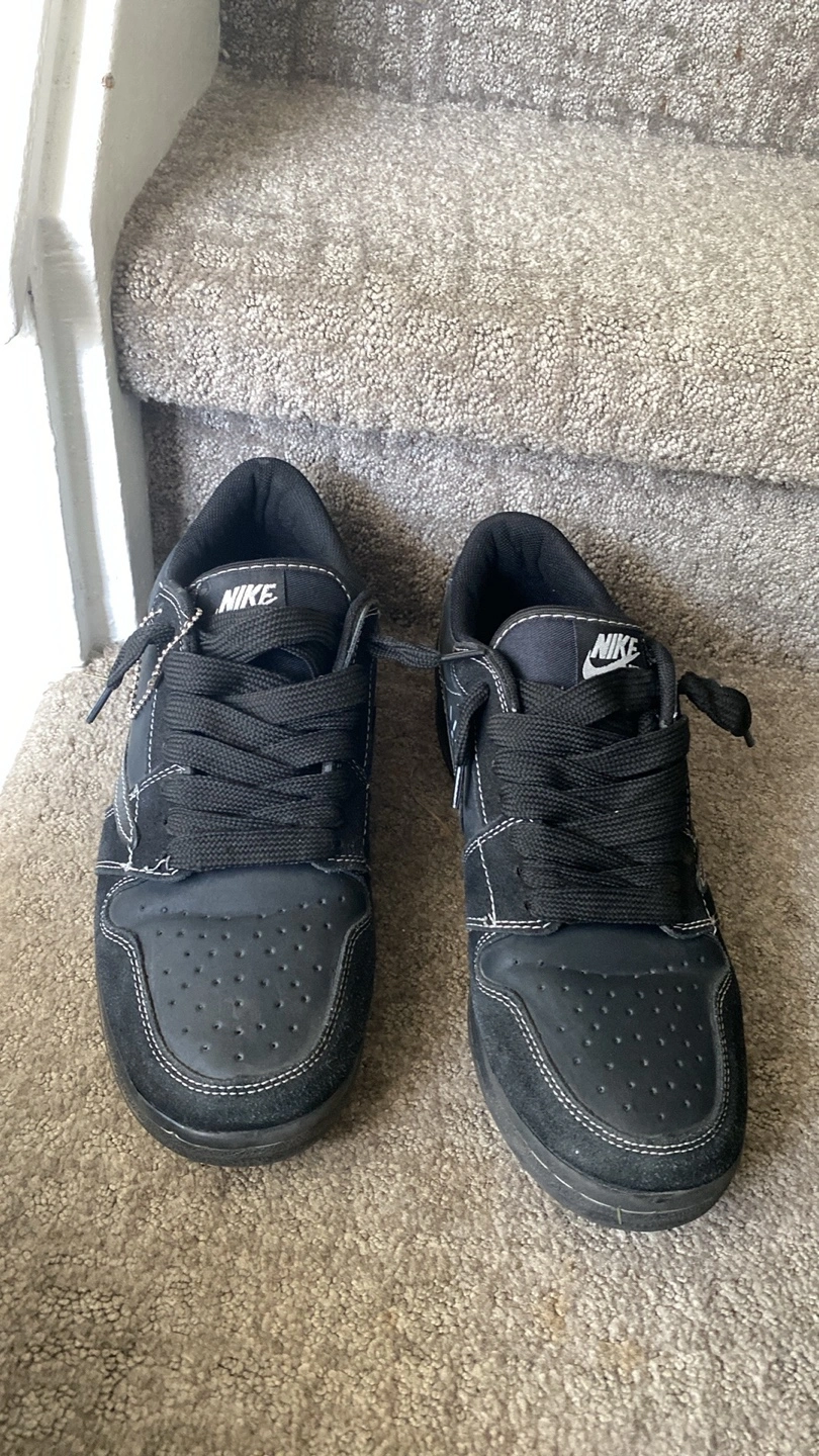 Selling a pair of Nike x Travis Scott Low Black Phantom sneakers in size 9. These shoes are in great condition and ready for a new home. They feature a sleek black design with unique Travis Scott detailing. Don't miss out on this stylish collaboration!