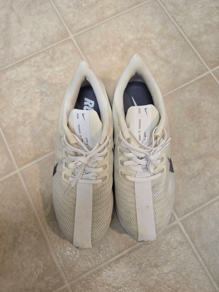 Selling a pair of Nike Zoom Pegasus 35 Turbo running shoes in size 10.5US. They show some signs of wear on the soles, but the uppers are in good shape. Great for running or everyday wear!