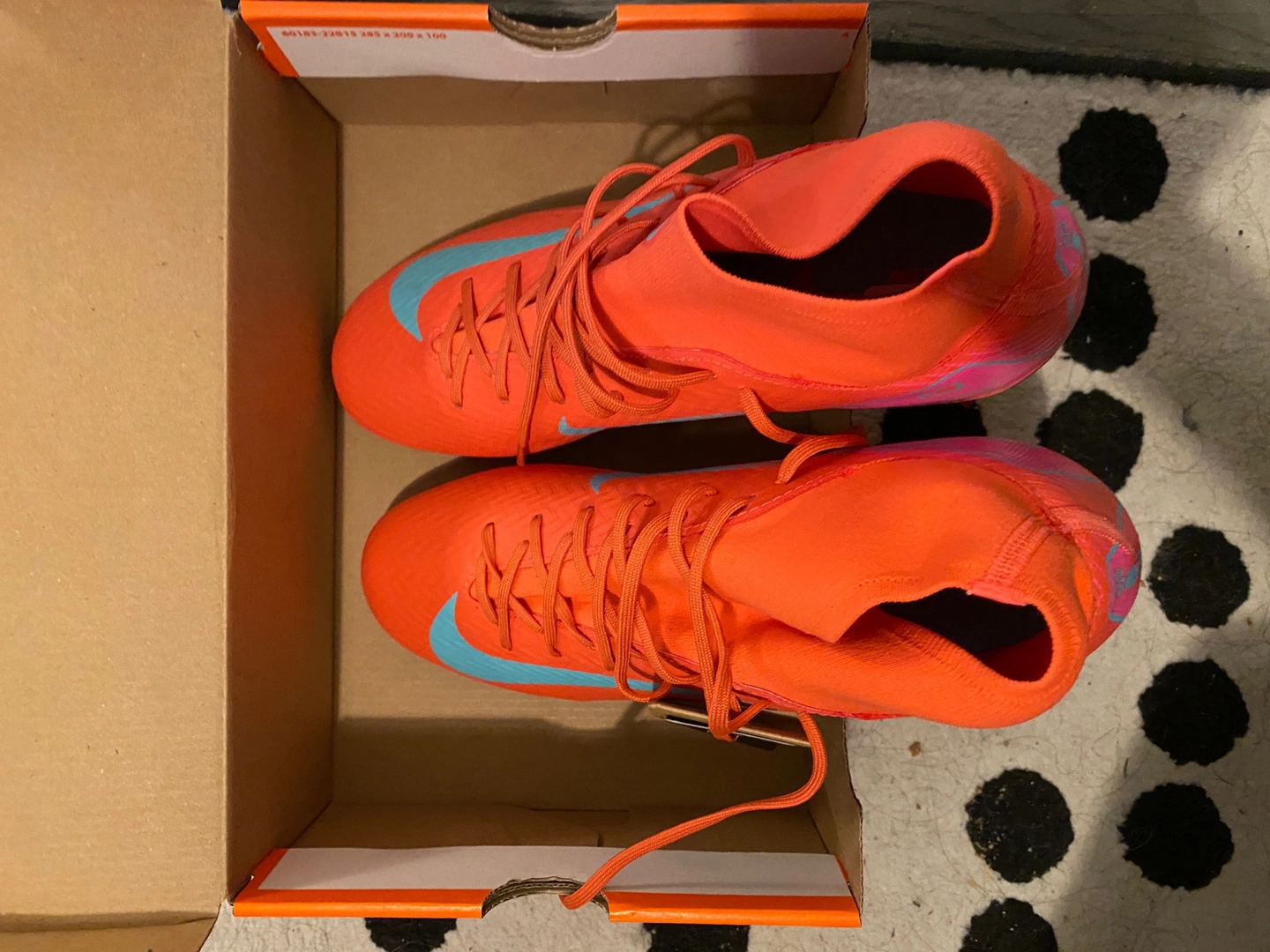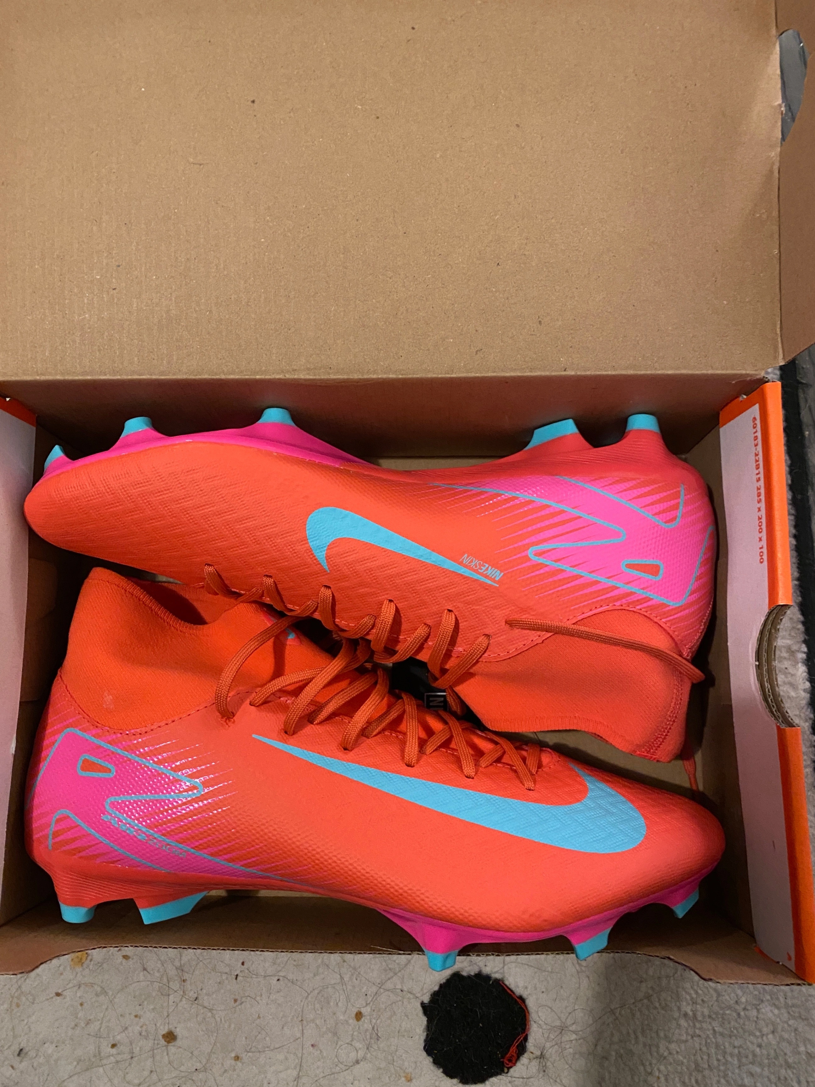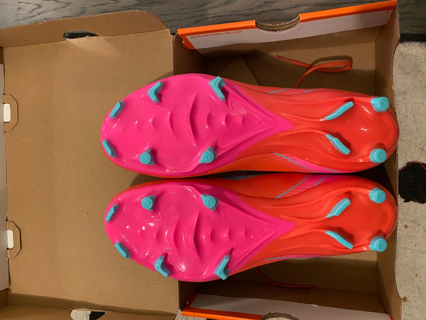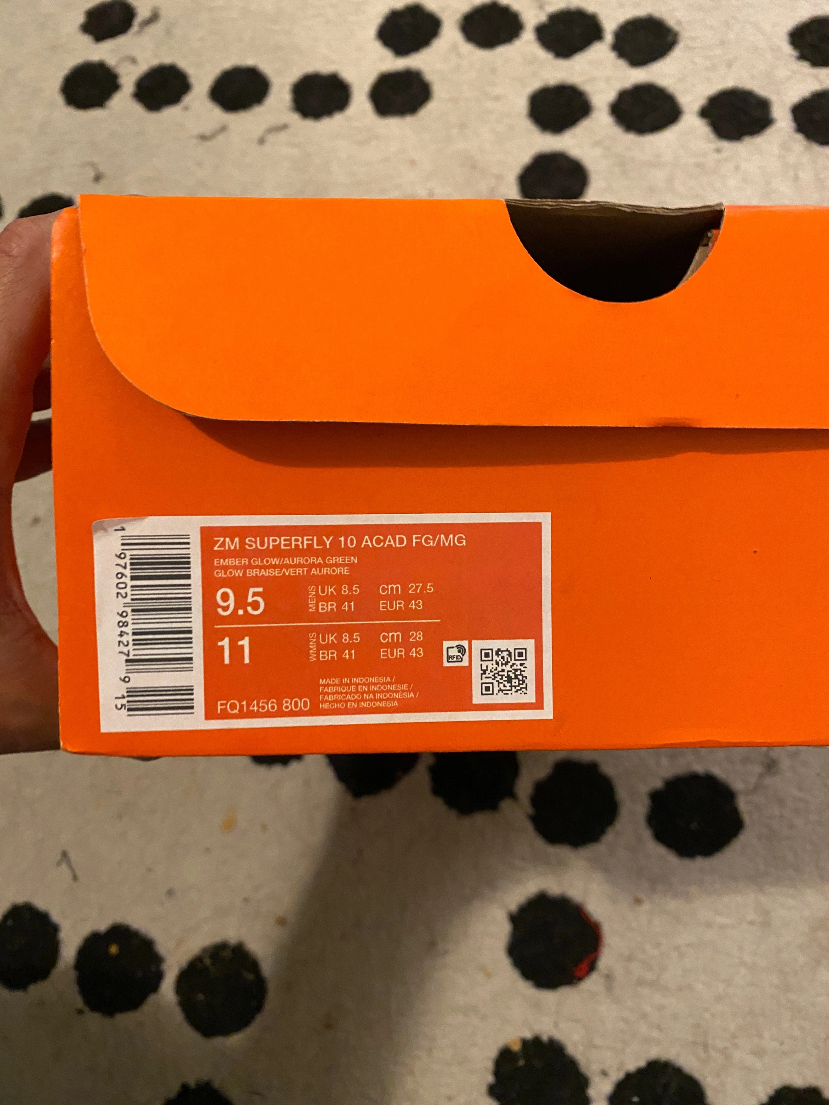 10Brand new Nike Zoom Superfly 10 Academy FG/MG Cleats in Ember Glow/Aurora Green colorway. Never worn — still in box! Perfect for firm ground or multi-ground play. - Men’s size 9.5 (EUR 43) - Brand new with box - Lightweight design for speed and control - Retail price: $160+ - Stylish bright orange with teal accents Perfect for players who want performance, comfort, and standout style on the field.