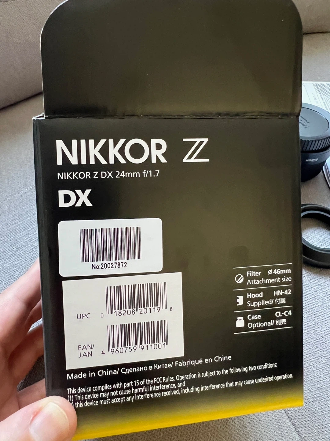 23Selling a Nikkor Z DX 24mm f/1.7 lens. It's in great condition and comes with the original box and a lens case. The lens has a 46mm filter attachment size and the hood is supplied. It's a fantastic lens for anyone looking to upgrade their photography gear! ORIGINAL PRICE - 279cad