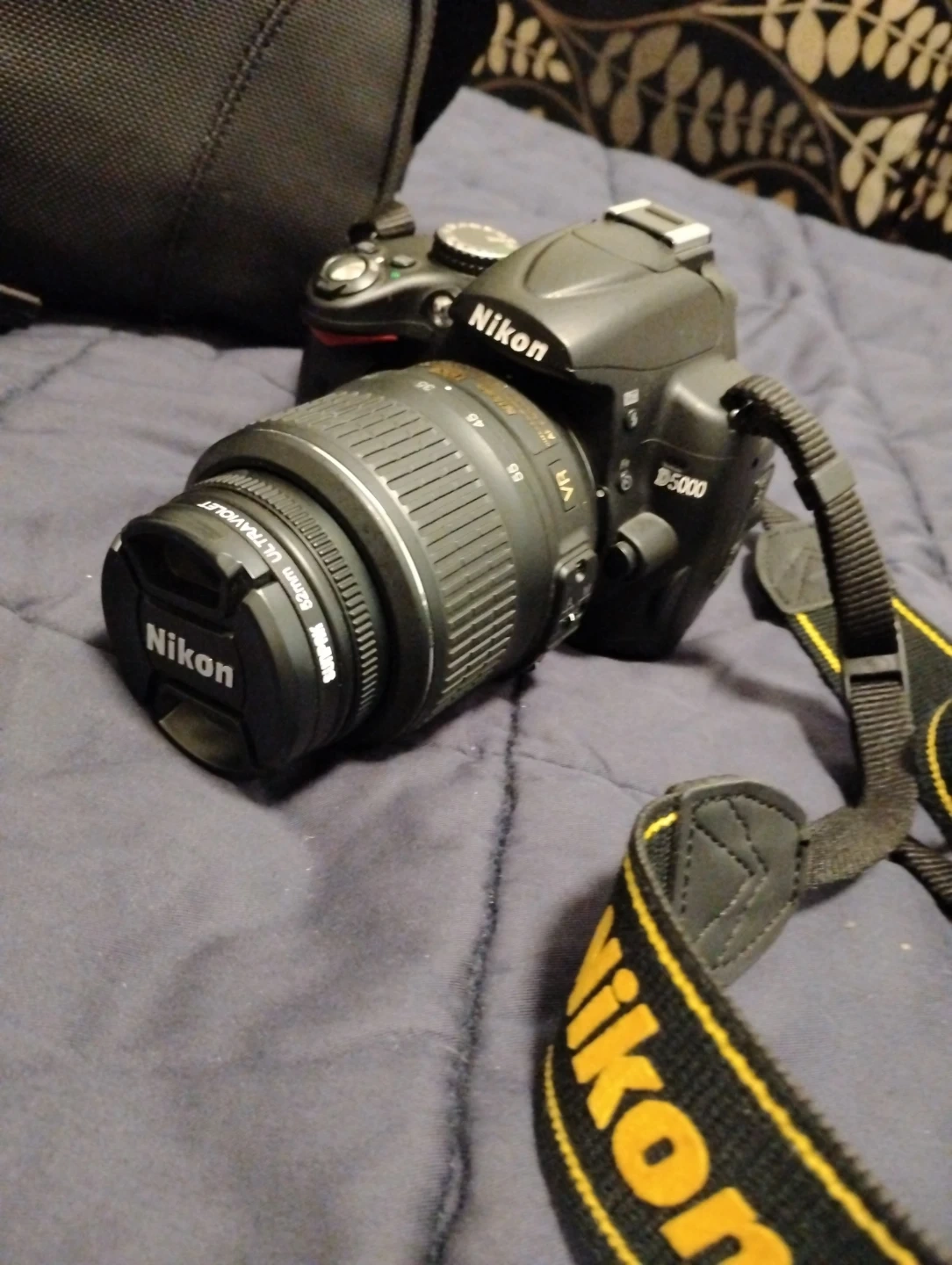 68Selling a Nikon D5000 DSLR camera. It comes with a lens, strap, and a carrying bag to keep everything safe and organized. Perfect for someone looking to get into photography!