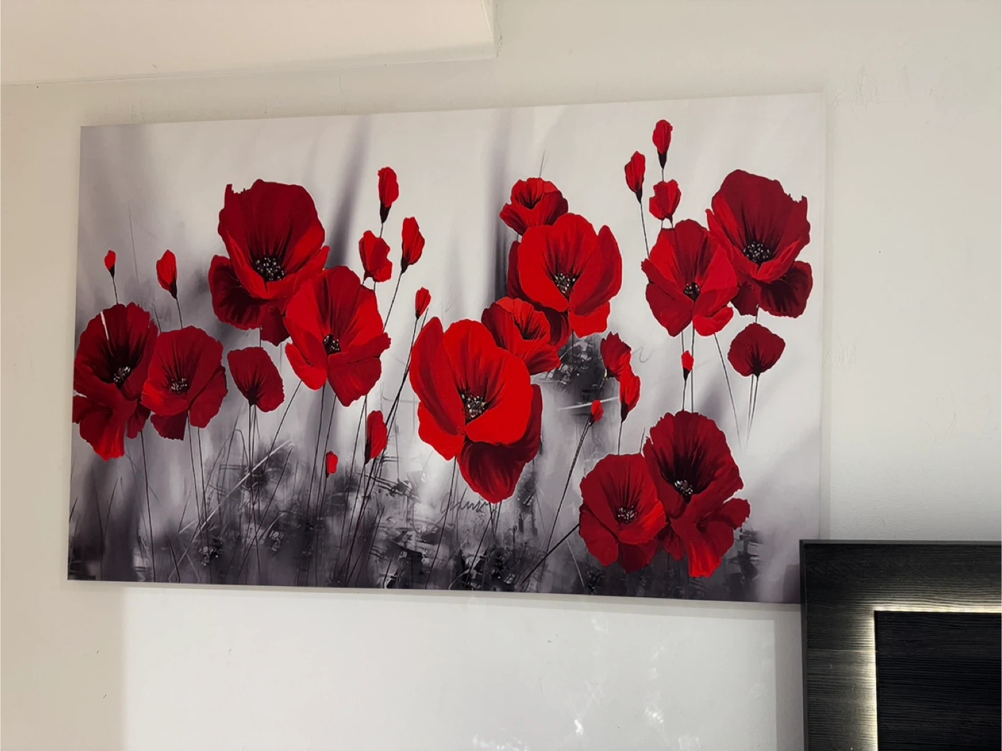 Three vibrant canvas prints featuring striking red poppies and a collection of colourful feathers. These artworks add a pop of colour and modern style to any room. Ready to hang for immediate display.