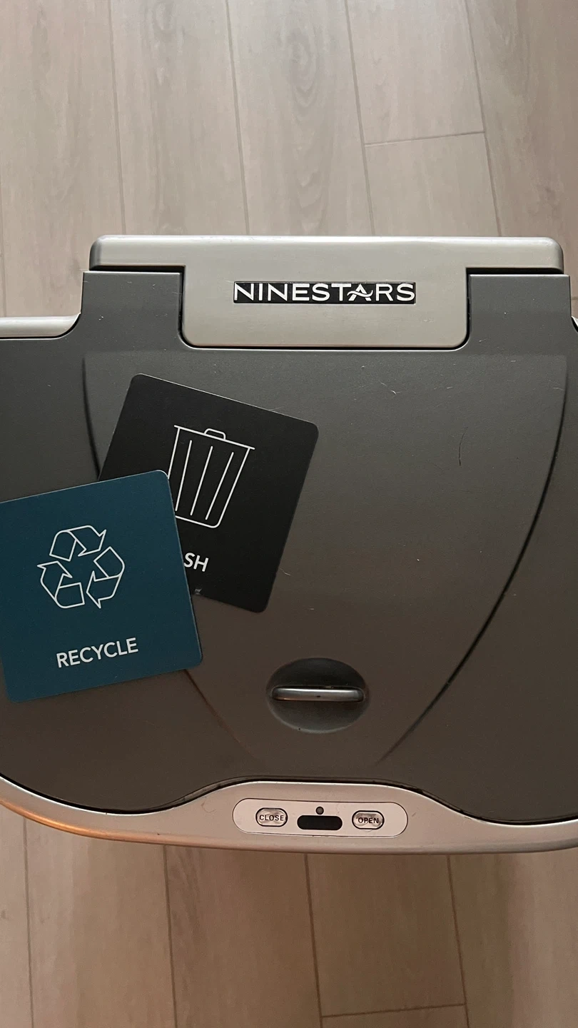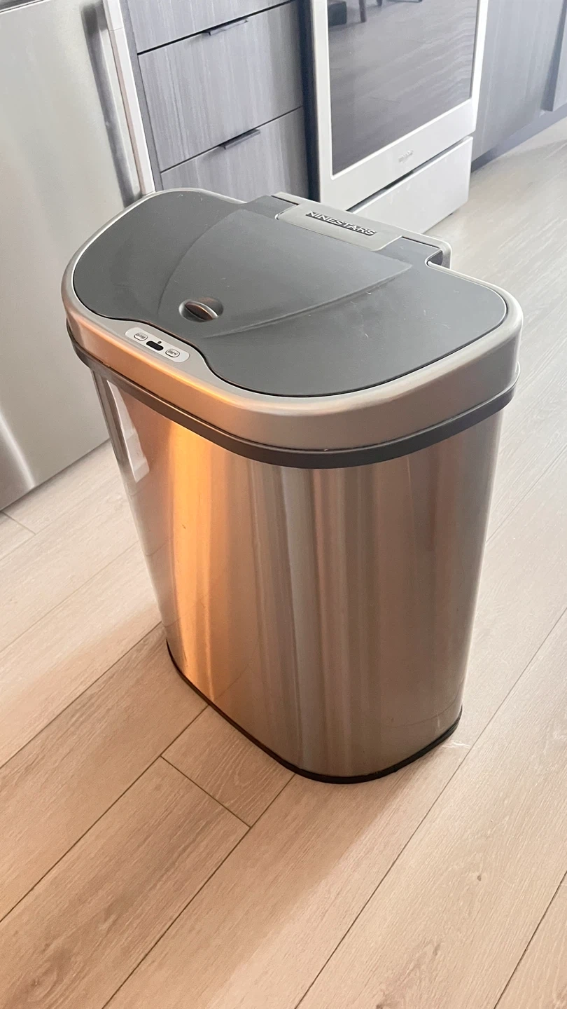122Looking to sell my Nine Stars 18.5 Gallon Stainless Steel Motion Sensor Multi-Compartments Trash & Recycling Bin! It has a motion sensor opening mechanism (wave your hand to open) and a custom delay sensor keeps the ABS-plastic dual lid from sliding open at inopportune moments. It's made of steel and has a container capacity of 18.5 gallons. Originally bought for $160