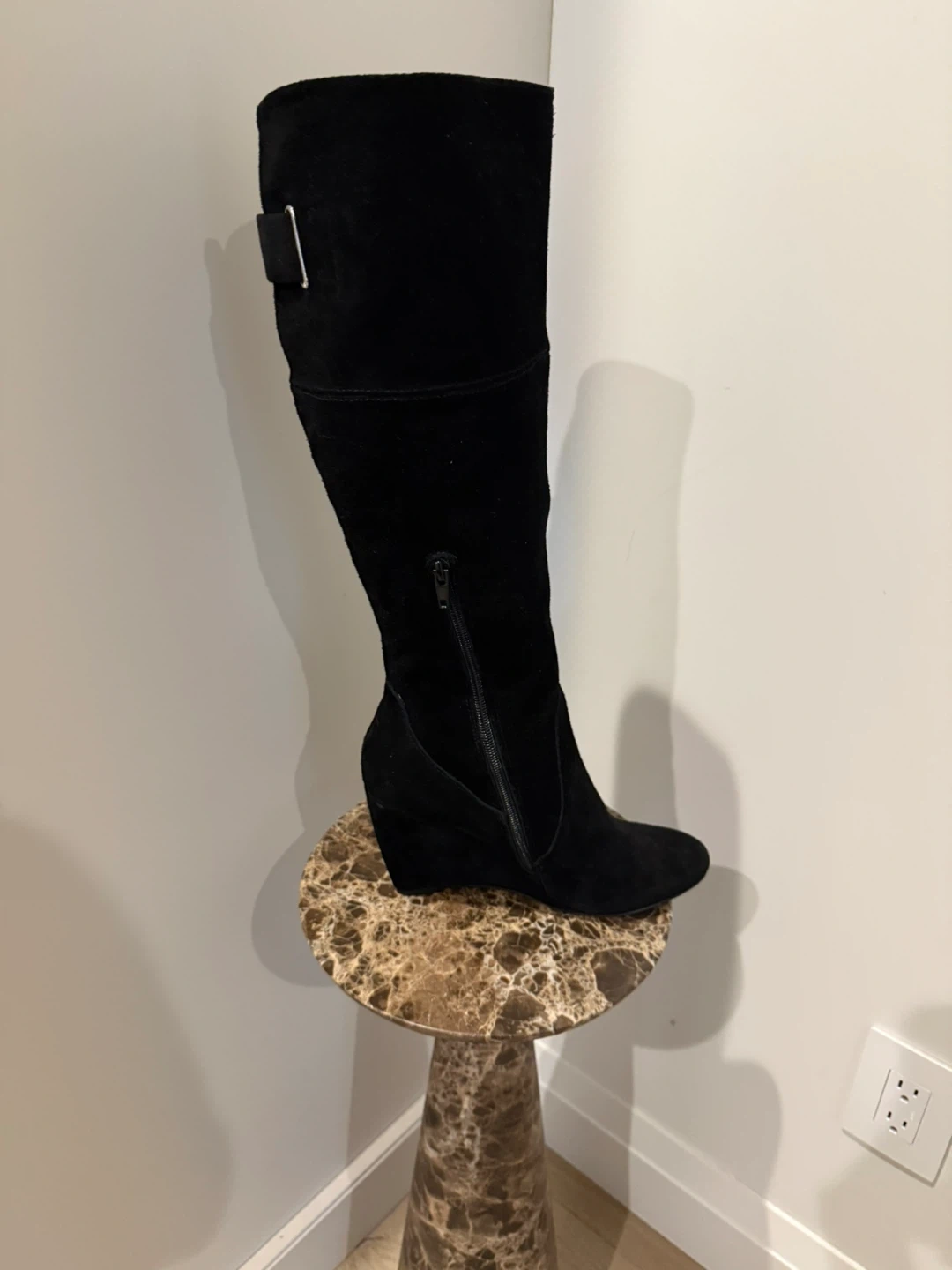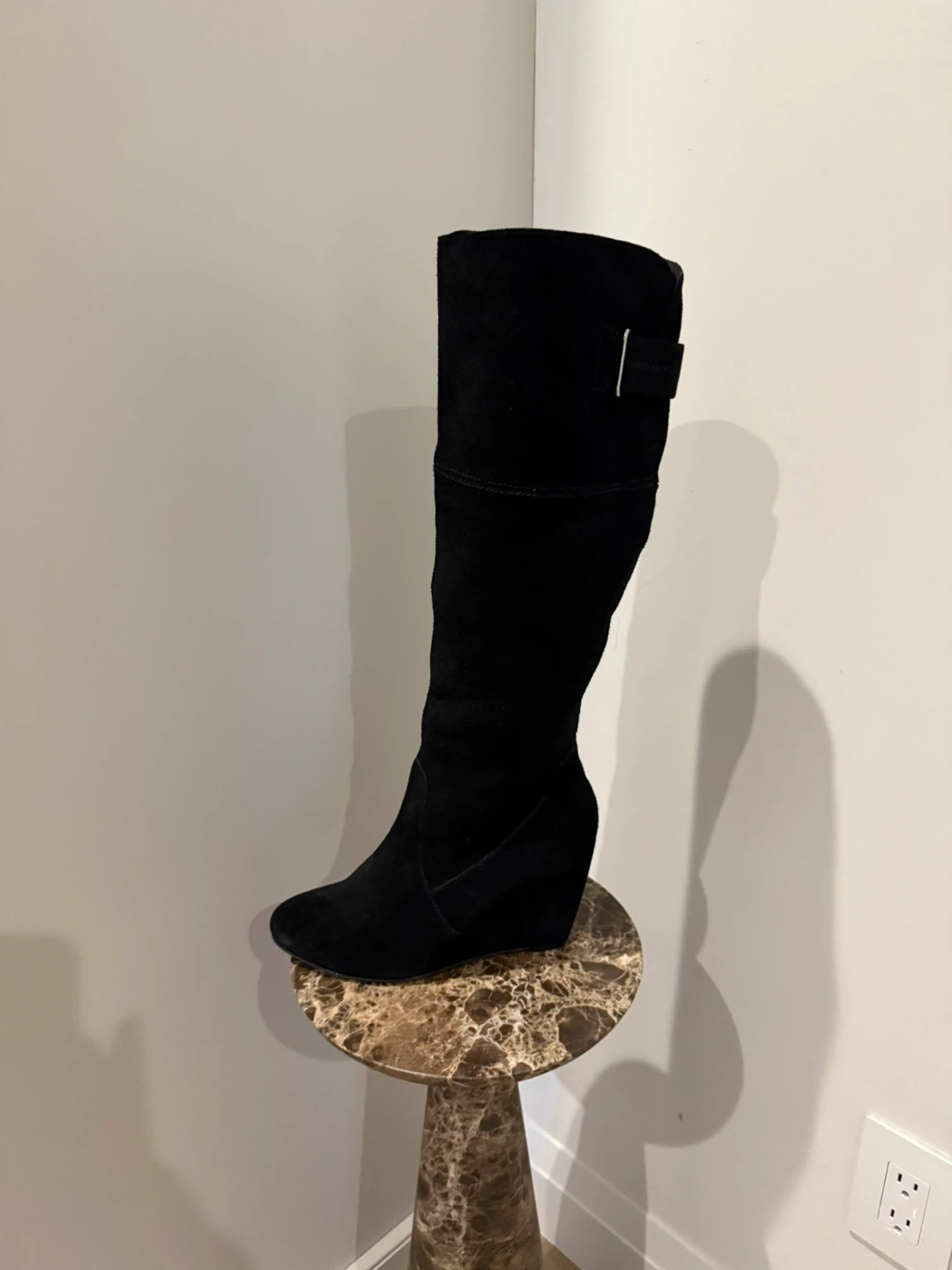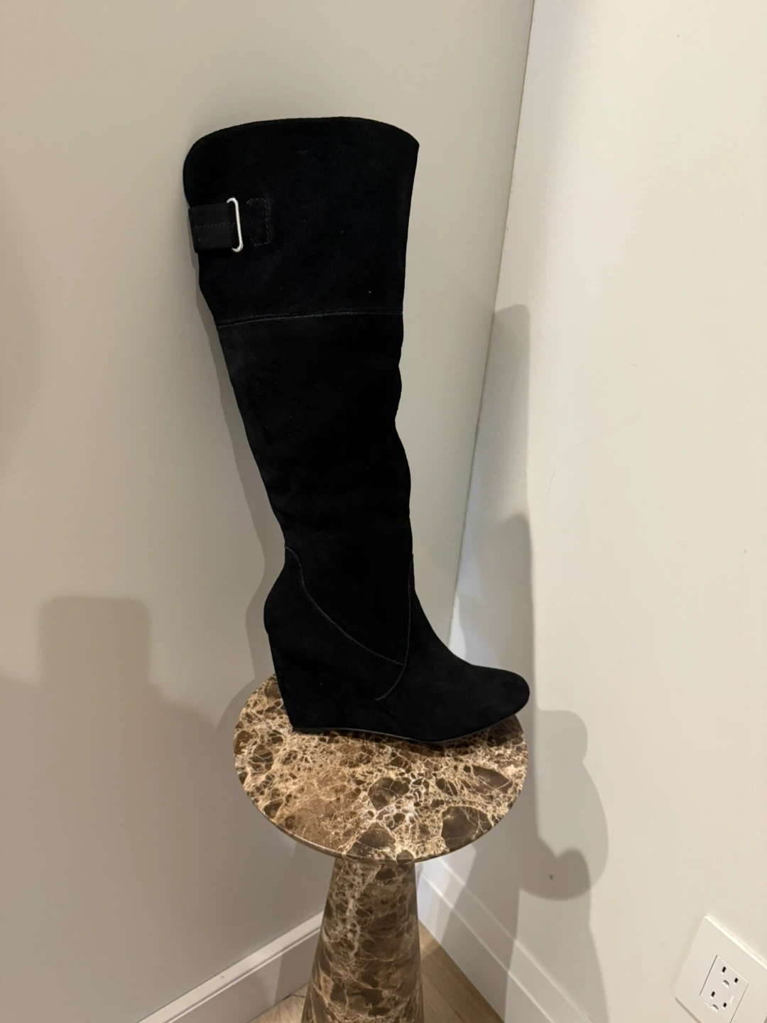 Miz Mooz Black Leather Wedge Sandals, size 10