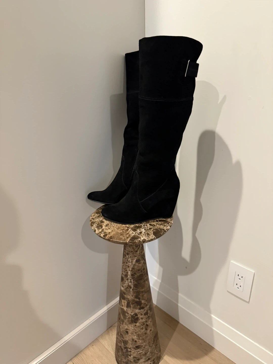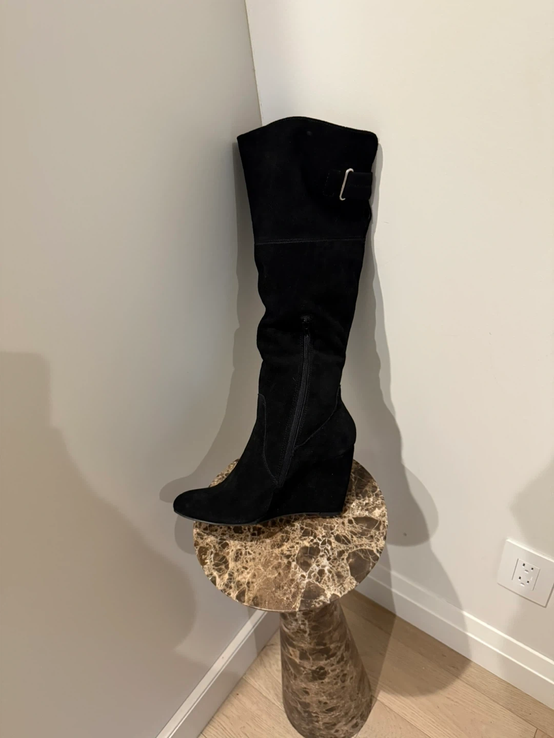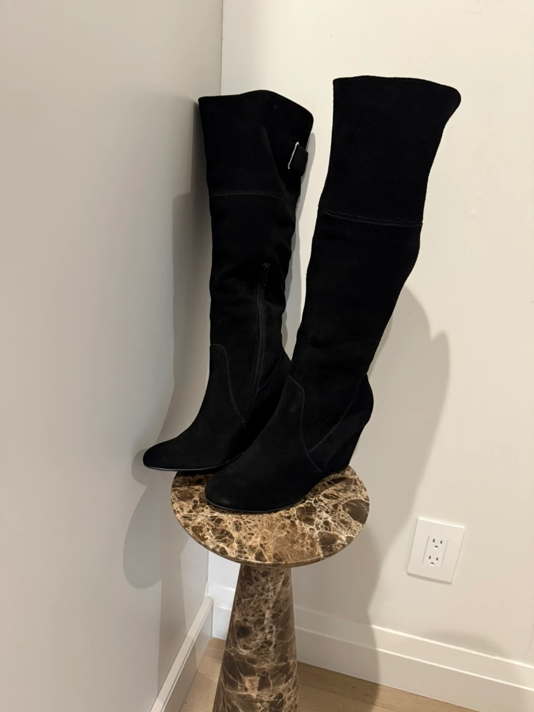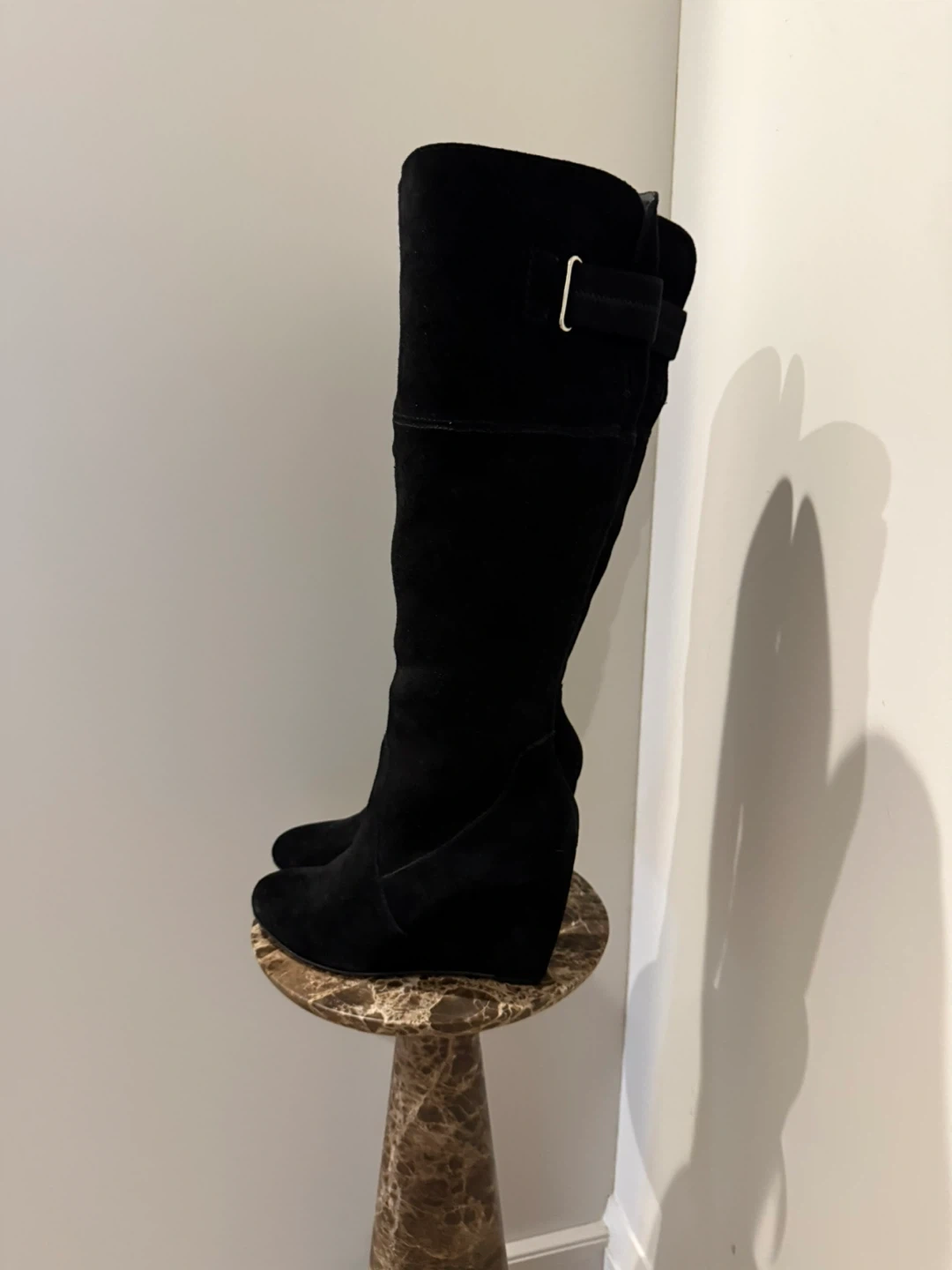 Miz Mooz Black Leather Wedge Sandals, size 10