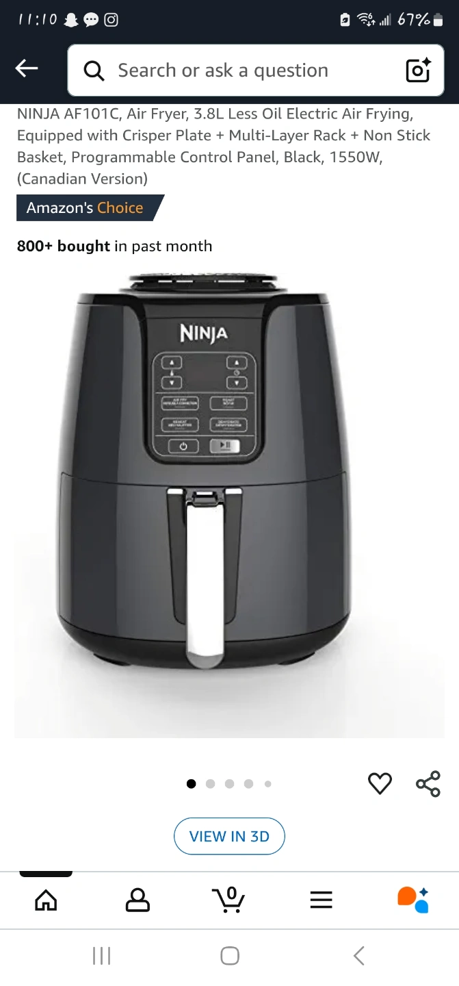 3.8L less oil electric air fryer. Features crisper plate, multi-layer rack, and non-stick basket. Programmable control panel. Black, 1550W. Canadian version. In a good condition. Used for less than a year. Clean.