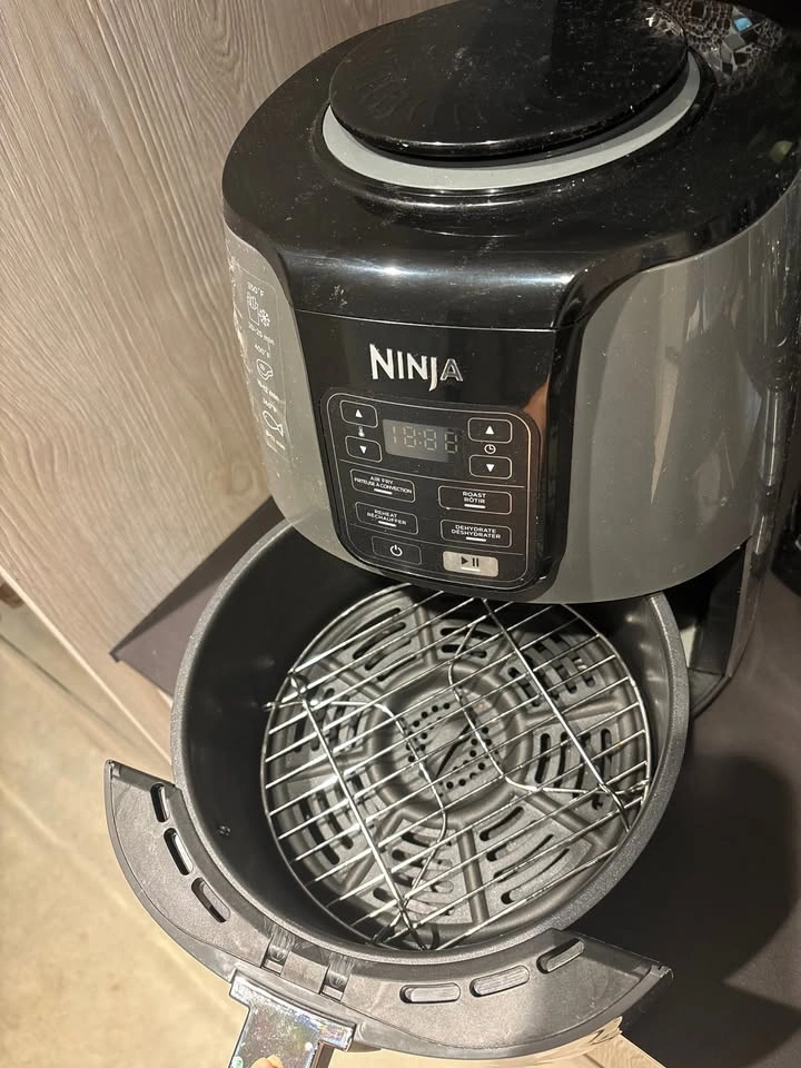Air fry with up to 75% less fat than traditional frying. Wide temperature range: 105°F–400°F for gentle dehydration or quick convection cooking & crisping. 3.8L ceramic-coated, nonstick basket & crisper plate – fits up to 2 lbs. of French fries. Multi-layer rack to increase dehydrating capacity. Dehydrate function – make chip-like snacks with low fan speed & low temperature. Dishwasher-safe parts – easy-to-clean basket, crisper plate, and rack. Value: Total cost new was $150.