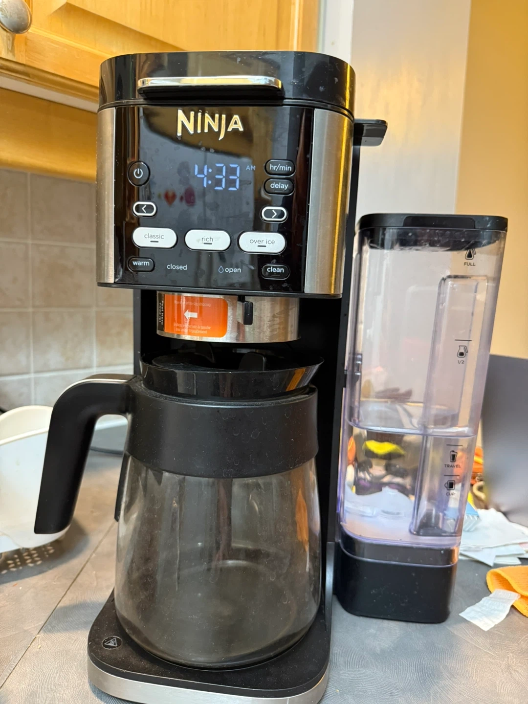 Brew your perfect cup with this Ninja Coffee Brewer! This used coffee maker offers multiple brew settings, a built-in frother, and a sleek design that fits any kitchen. Key Features: * Multiple Brew Settings: Classic, Rich, and Over Ice. * Specialty Brew: Brews concentrated coffee for specialty drinks. * Fold-Away Frother: Turns hot or cold milk into silky-smooth froth. * Removable Water Reservoir: Easy to fill and clean. * Programmable Delay Brew: Set it and forget it for coffee when you wake up.